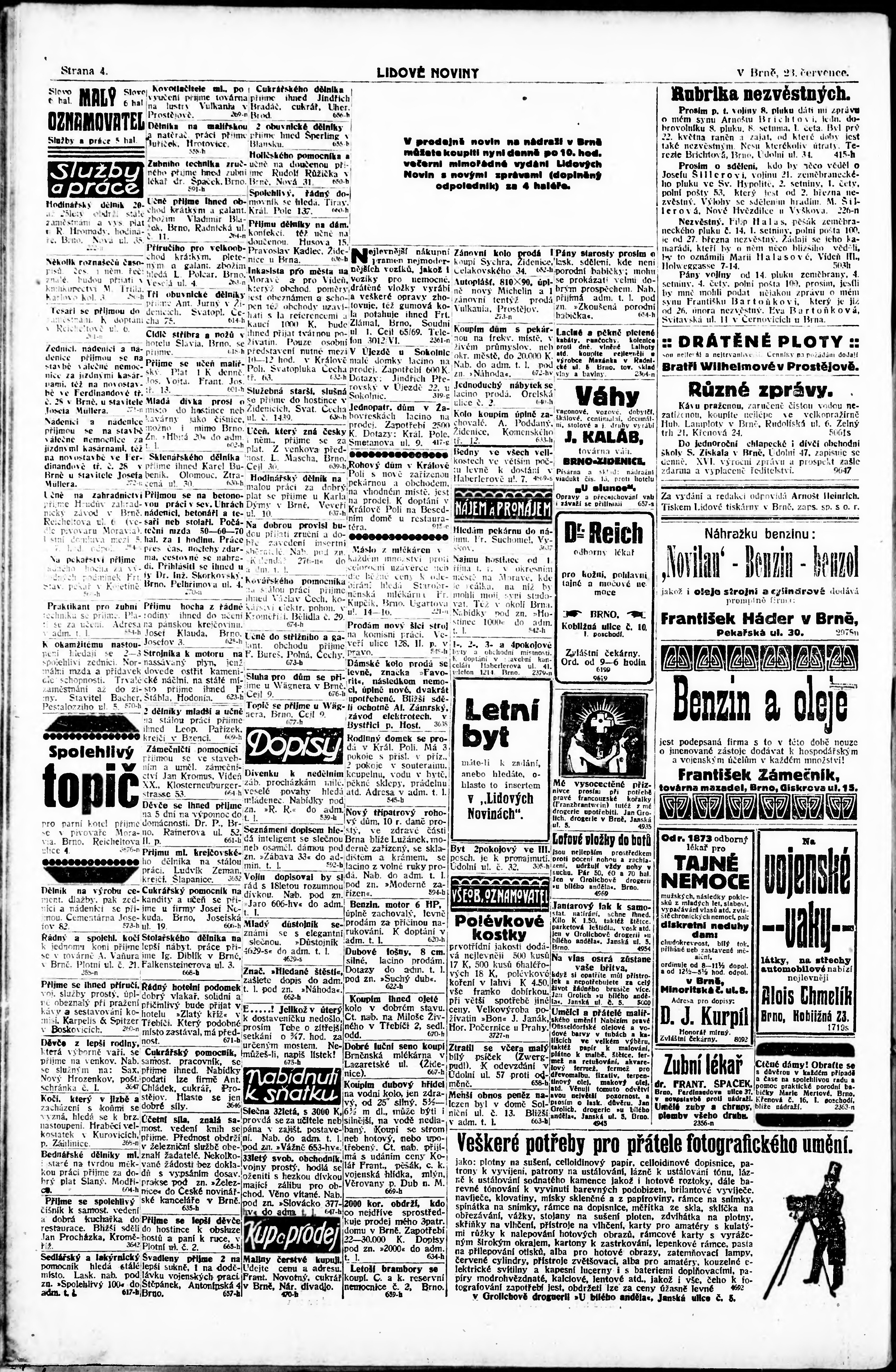 * Datum vydání výtisku: 23.7.1915 Číslo výtisku: 196 Poznámky k výtisku: odpolední vydání;