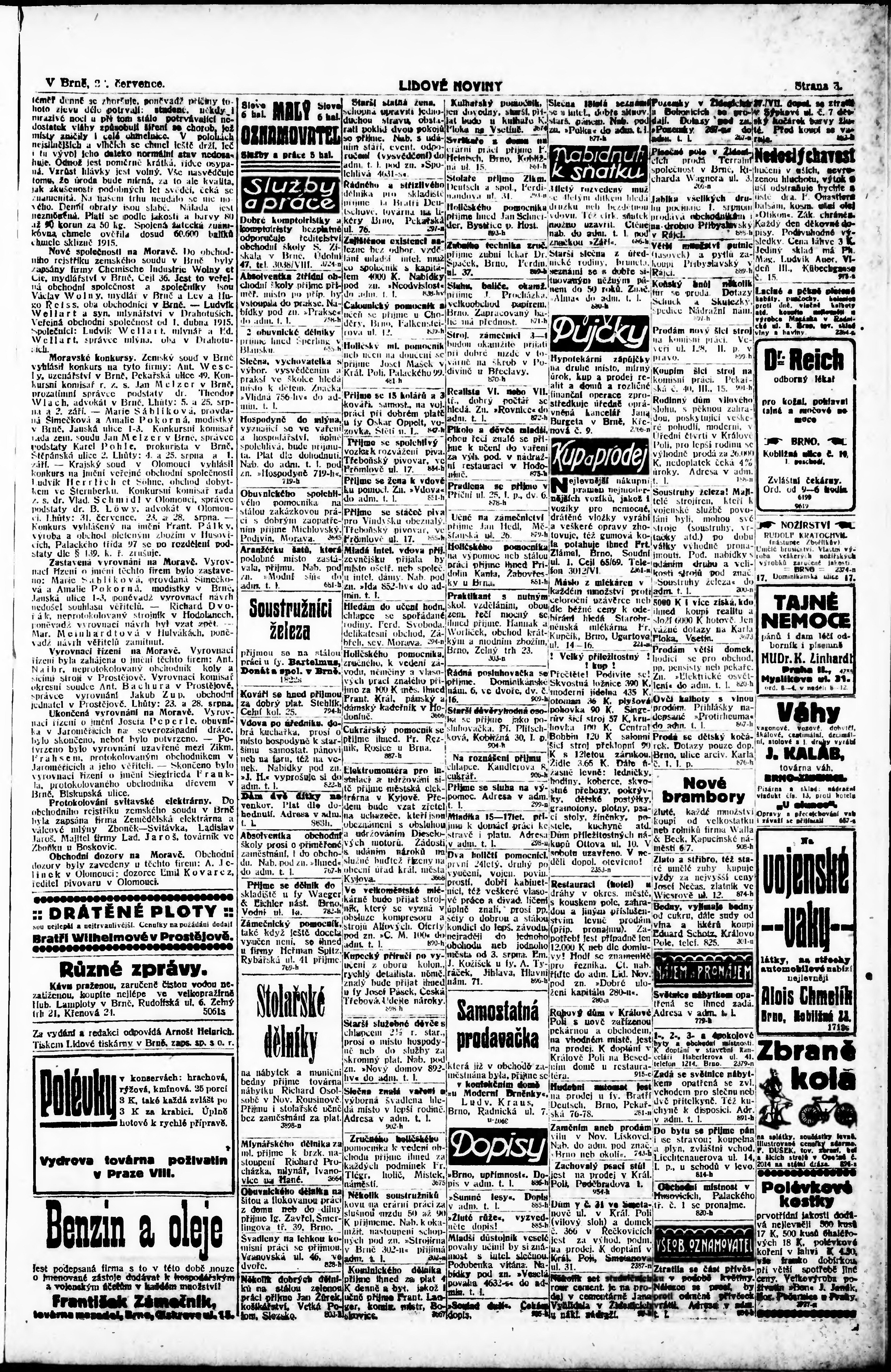 * Datum vydání výtisku: 29.7.1915 Číslo výtisku: 202 Poznámky k výtisku: 1. ranní vydání;