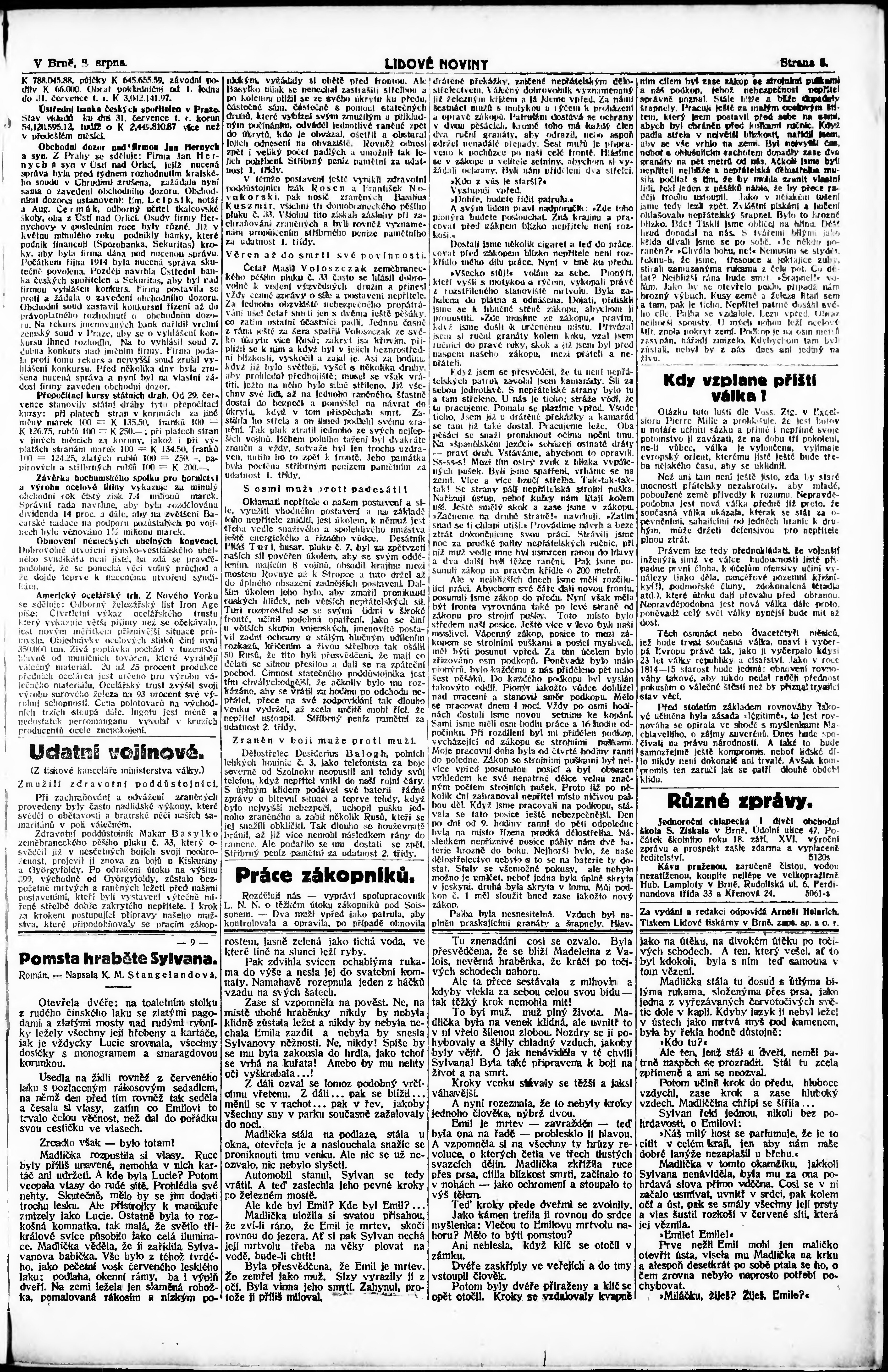 * Datum vydání výtisku: 3.8.1915 Číslo výtisku: 207 Poznámky k výtisku: 1. ranní vydání;