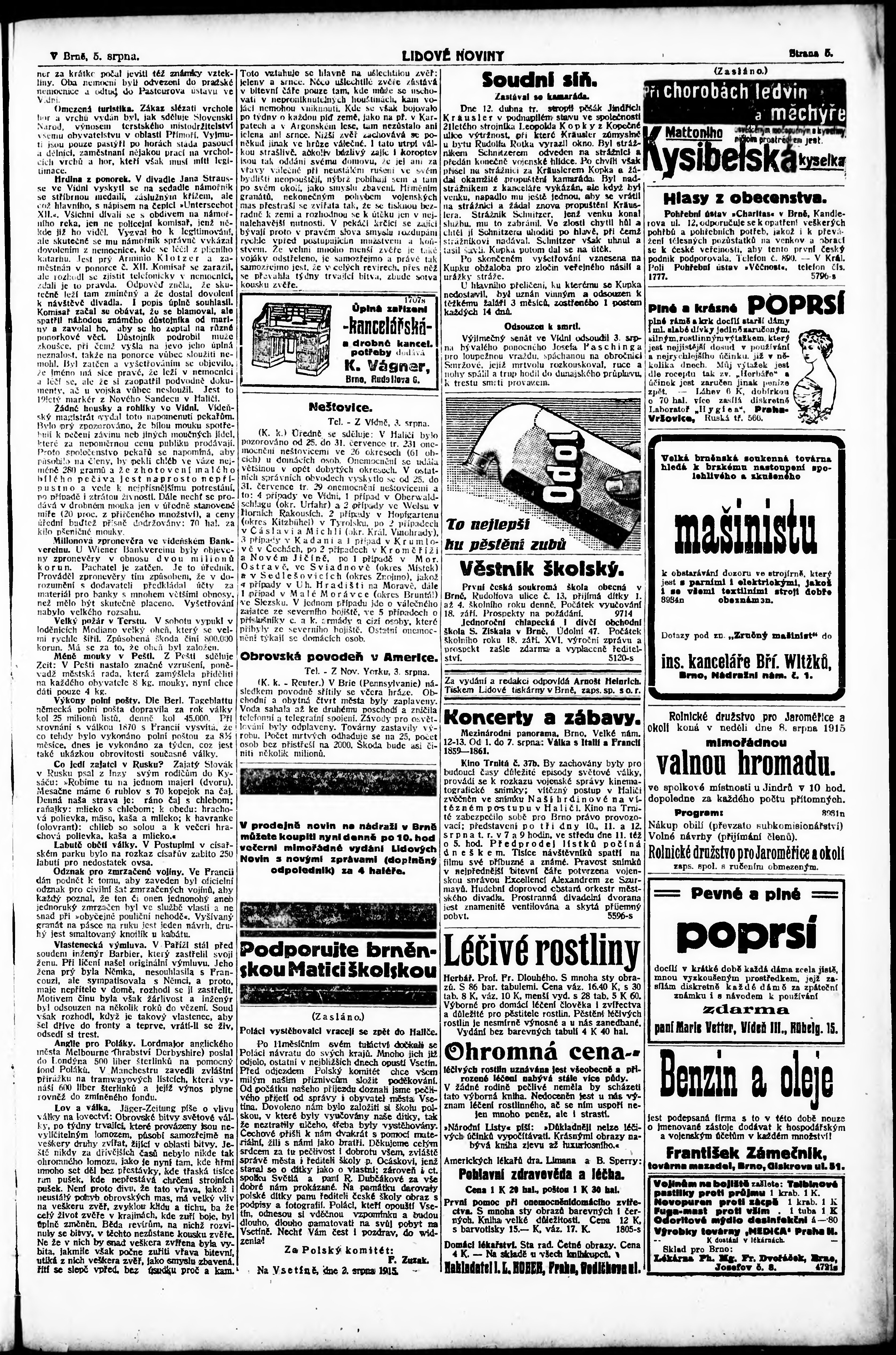 * Datum vydání výtisku: 5.8.1915 Číslo výtisku: 209 Poznámky k výtisku: ranní vydání;