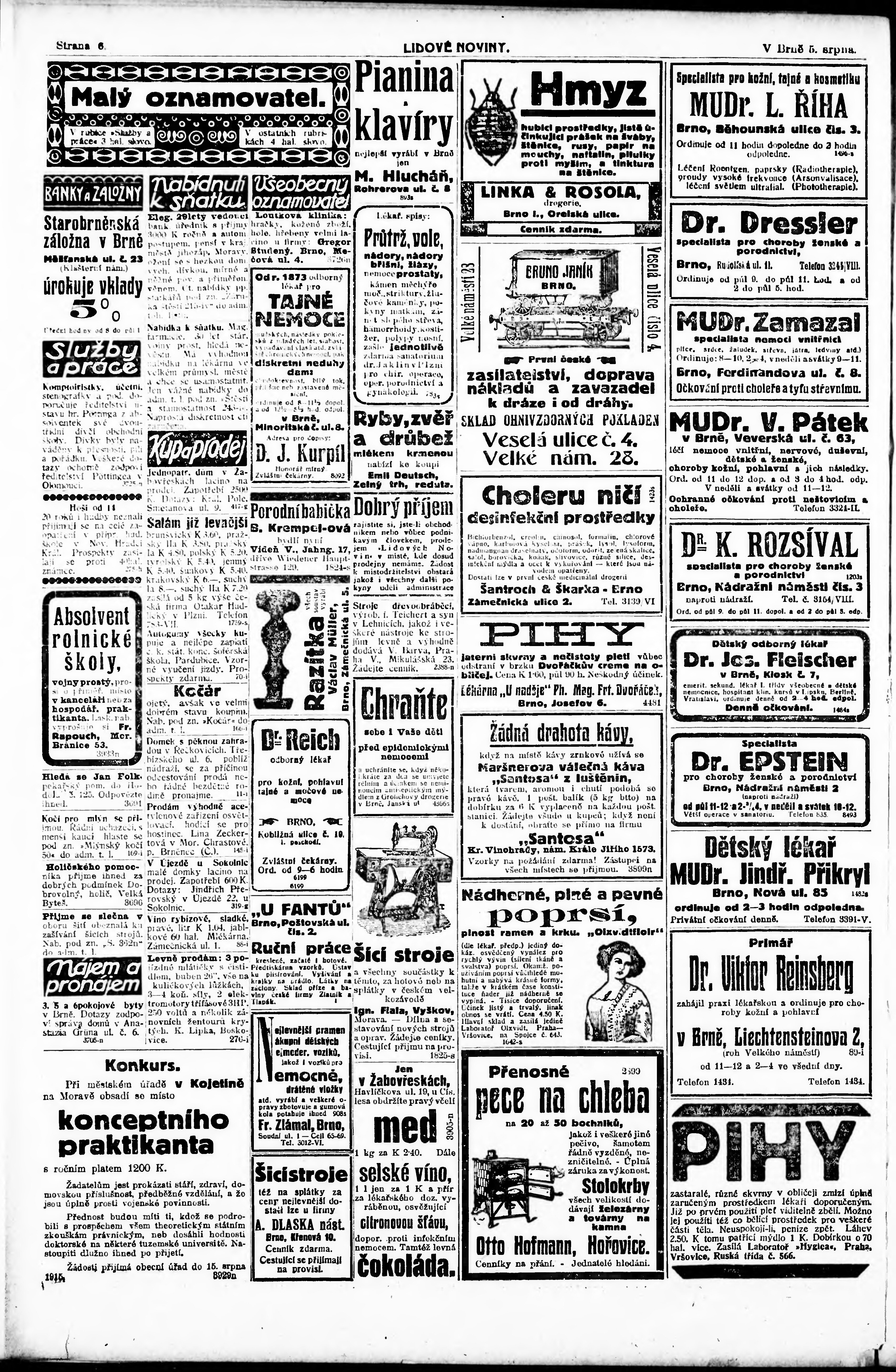 * Datum vydání výtisku: 5.8.1915 Číslo výtisku: 209 Poznámky k výtisku: ranní vydání;