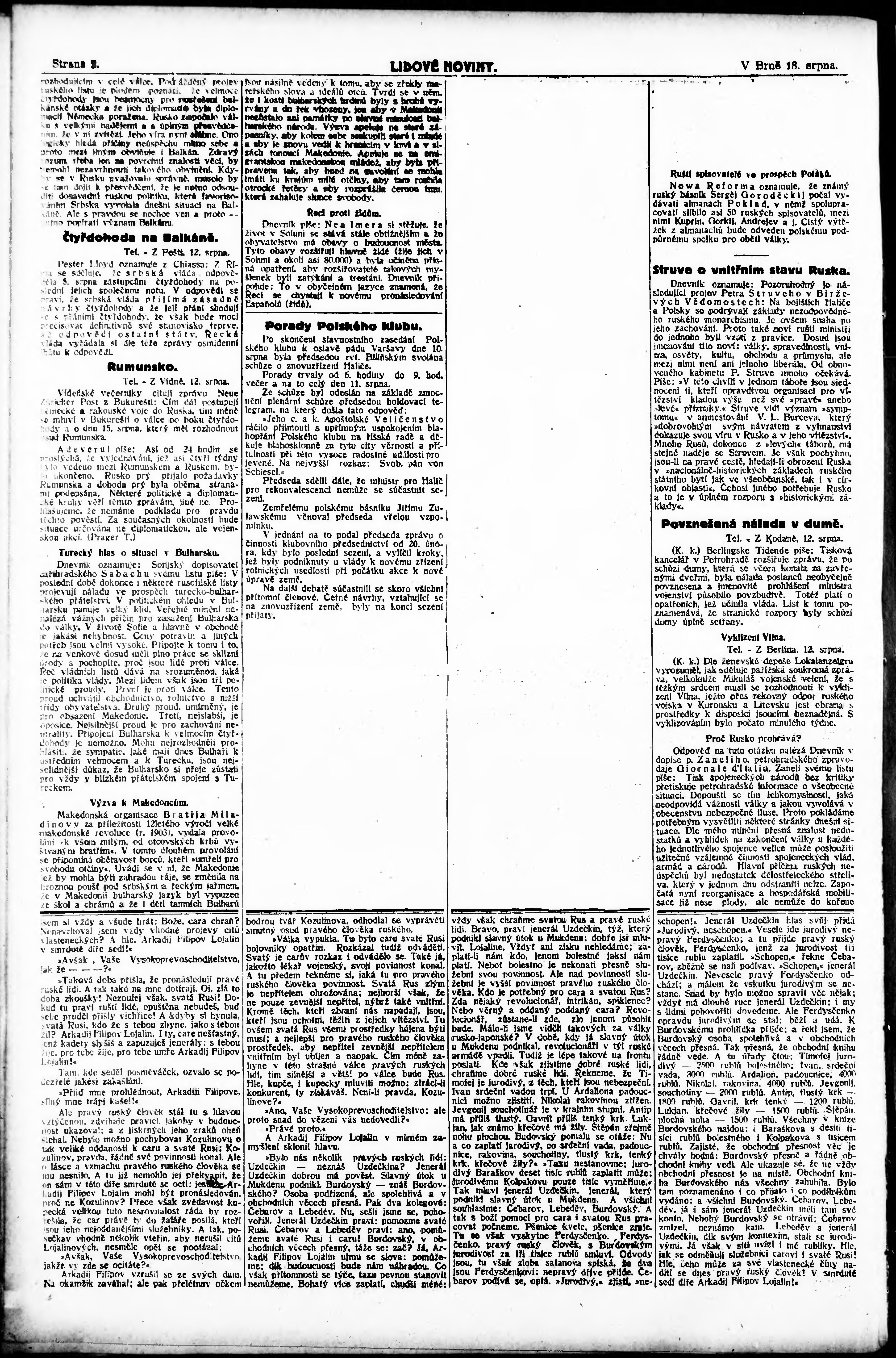 * Datum vydání výtisku: 13.8.1915 Číslo výtisku: 217 Poznámky k výtisku: ranní vydání;