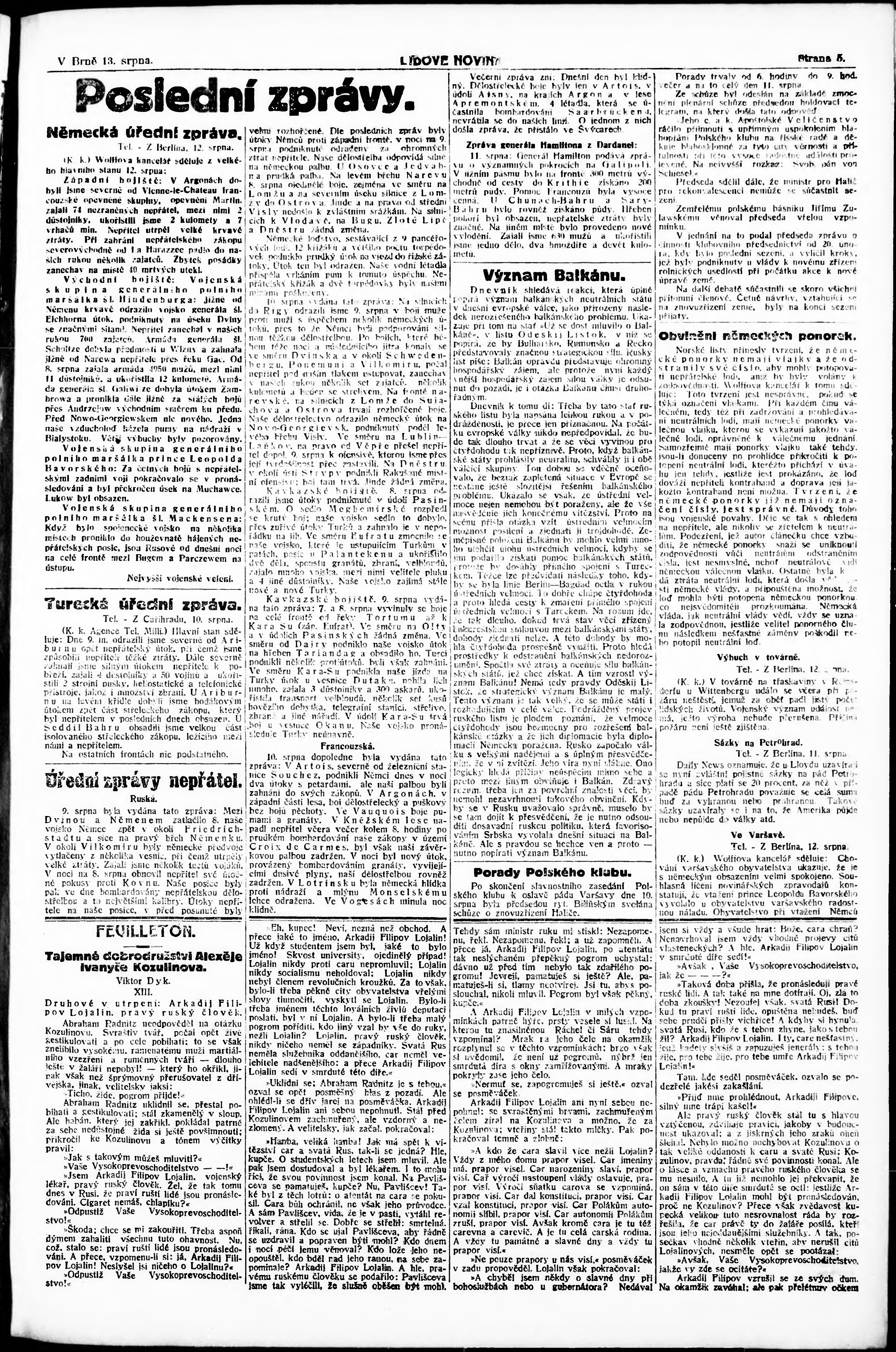 * Datum vydání výtisku: 13.8.1915 Číslo výtisku: 217 Poznámky k výtisku: 1. ranní vydání;