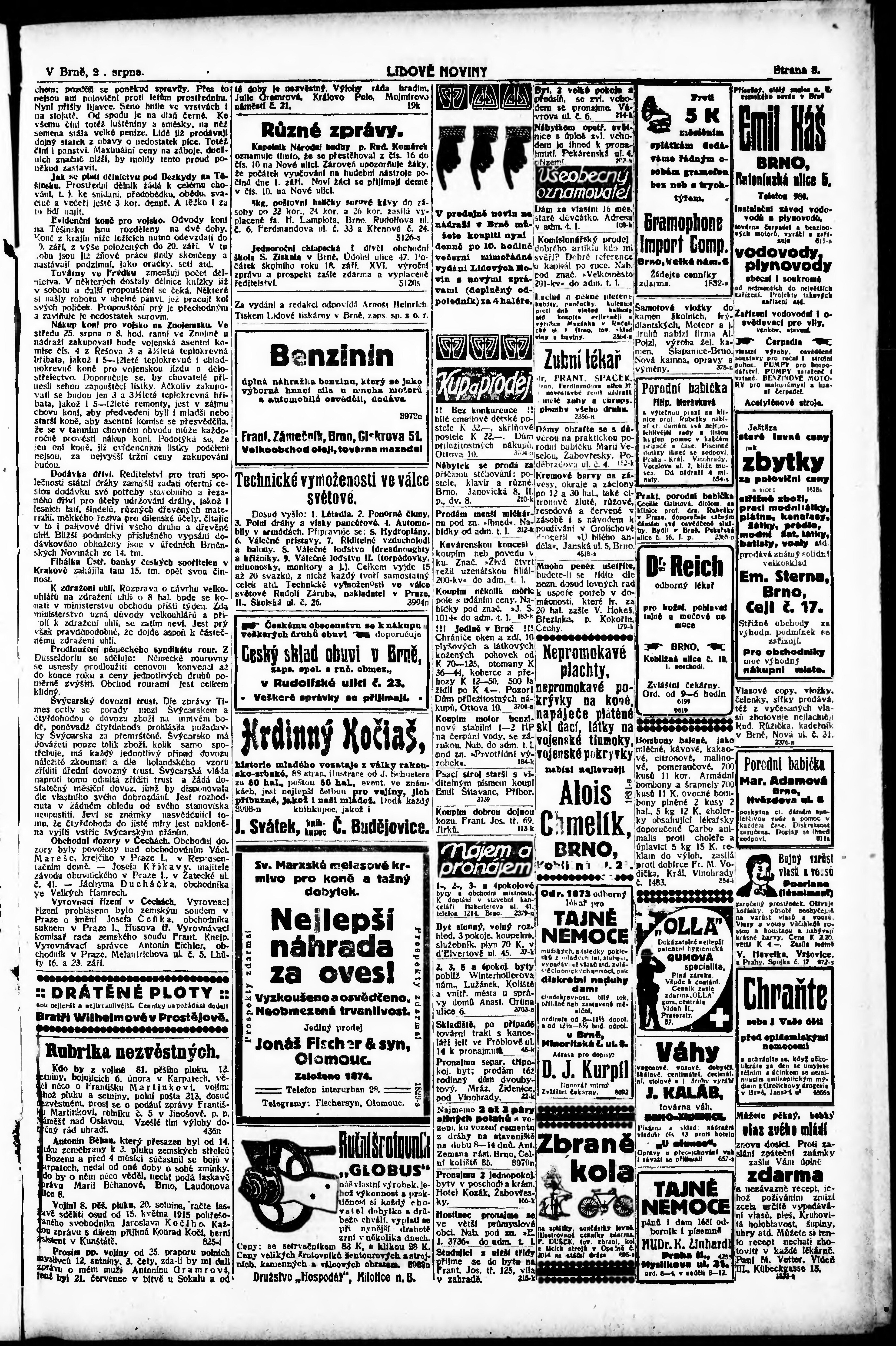 * Datum vydání výtisku: 22.8.1915 Číslo výtisku: 226 Poznámky k výtisku: 1. ranní vydání;