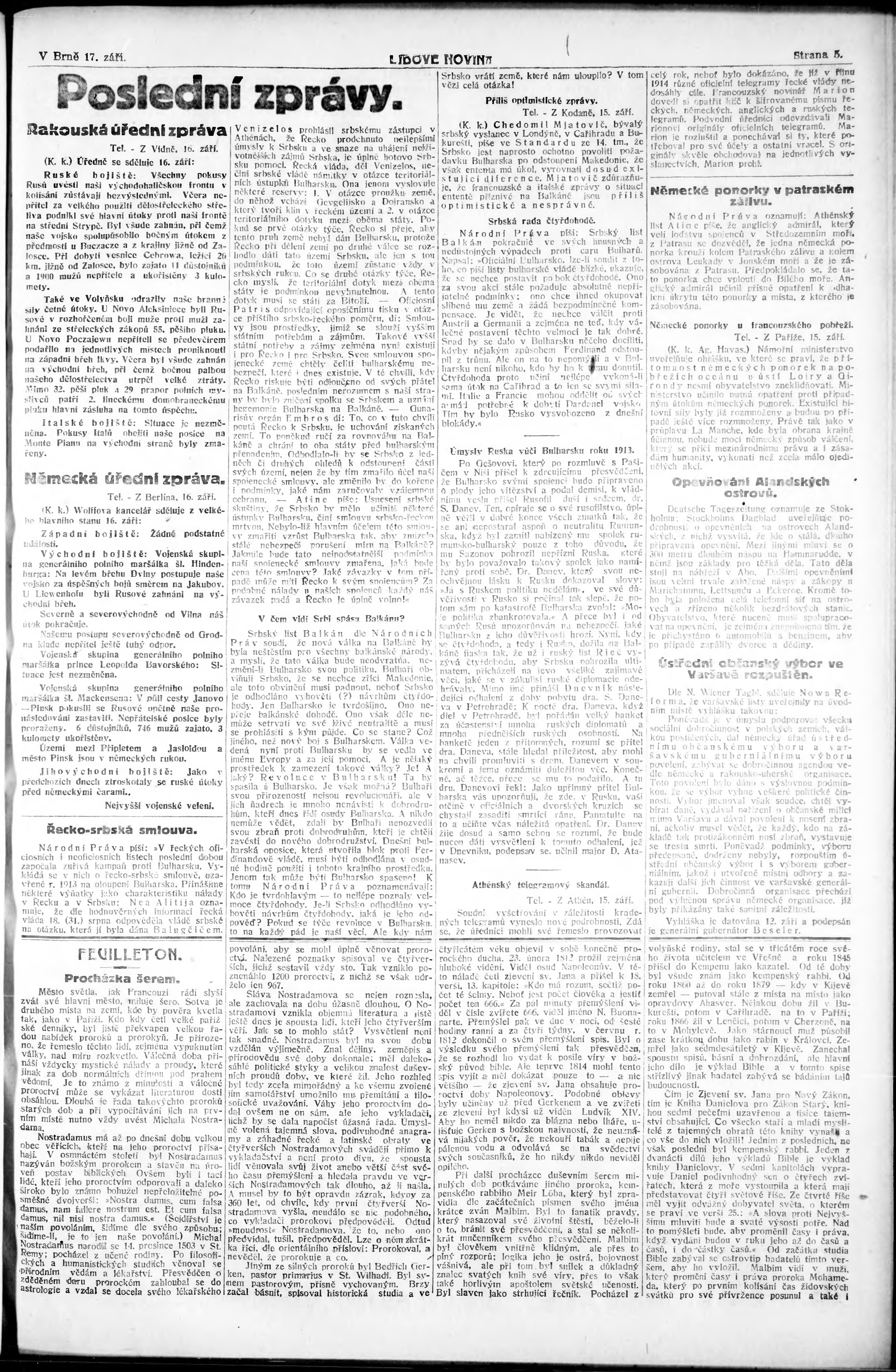 * Datum vydání výtisku: 17.9.1915 Číslo výtisku: 252 Poznámky k výtisku: 1. ranní vydání;