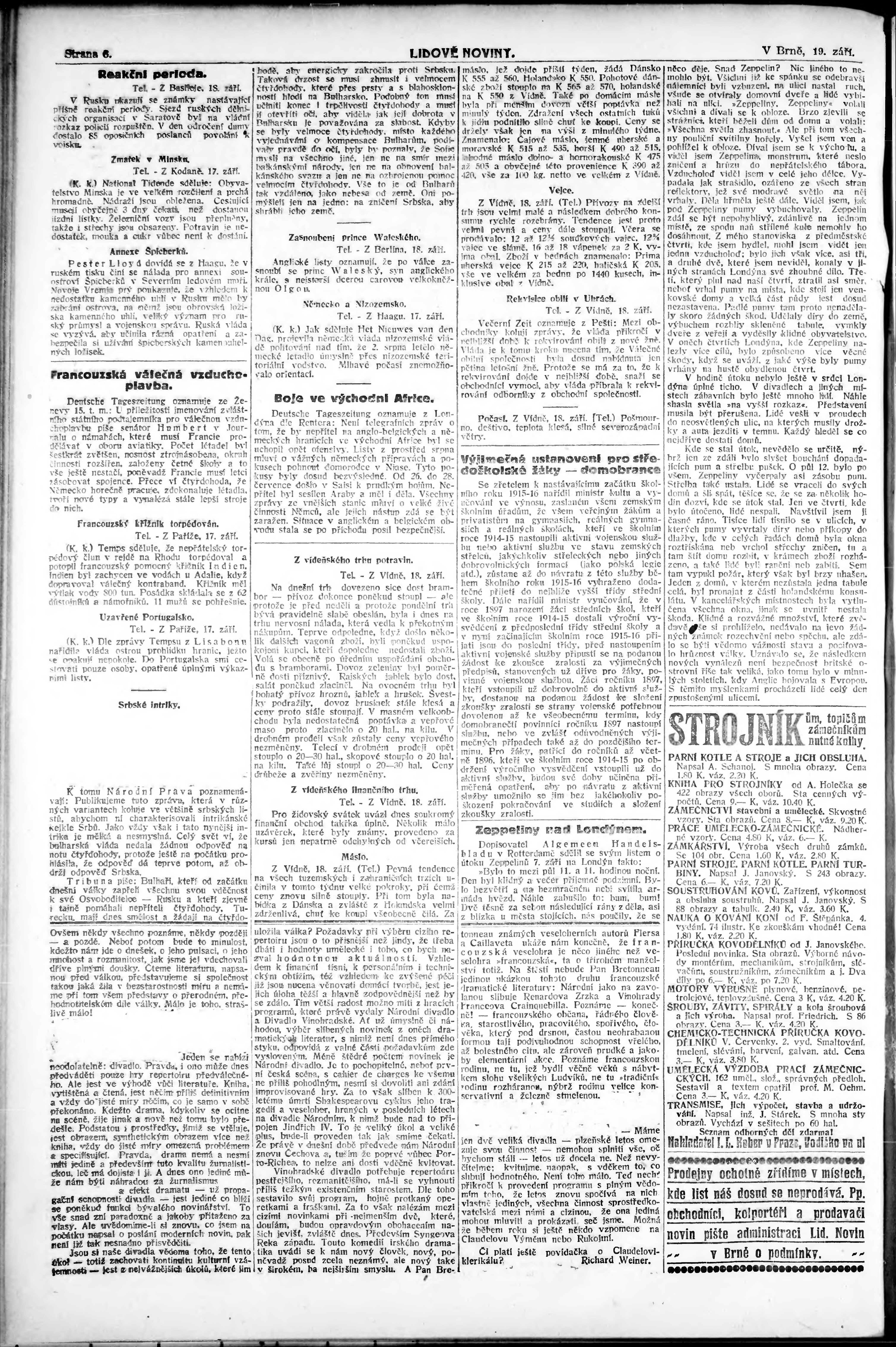 * Datum vydání výtisku: 19.9.1915 Číslo výtisku: 254 Poznámky k výtisku: 1. ranní vydání;