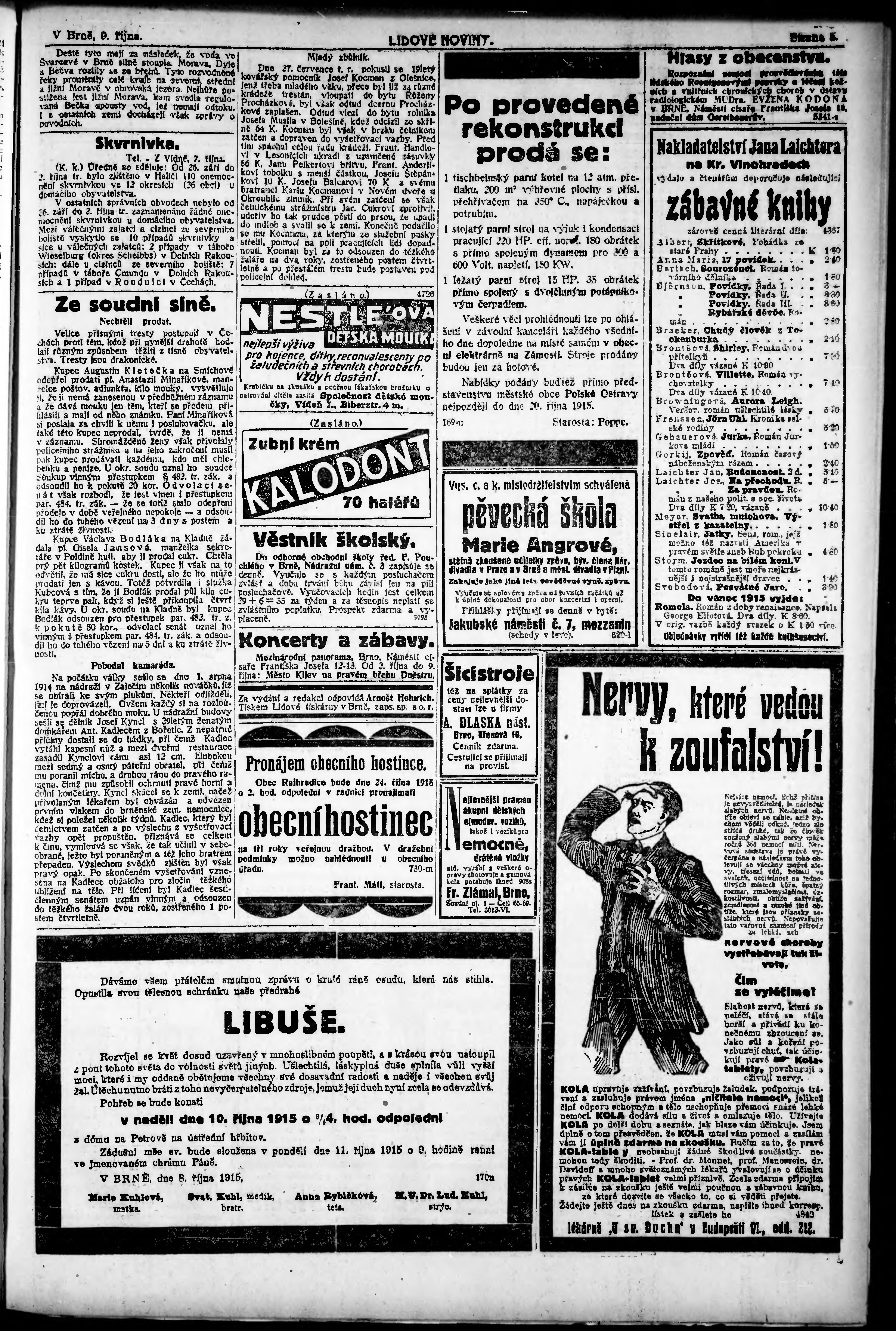 * Datum vydání výtisku: 9.10.1915 Číslo výtisku: 274 Poznámky k výtisku: ranní vydání;