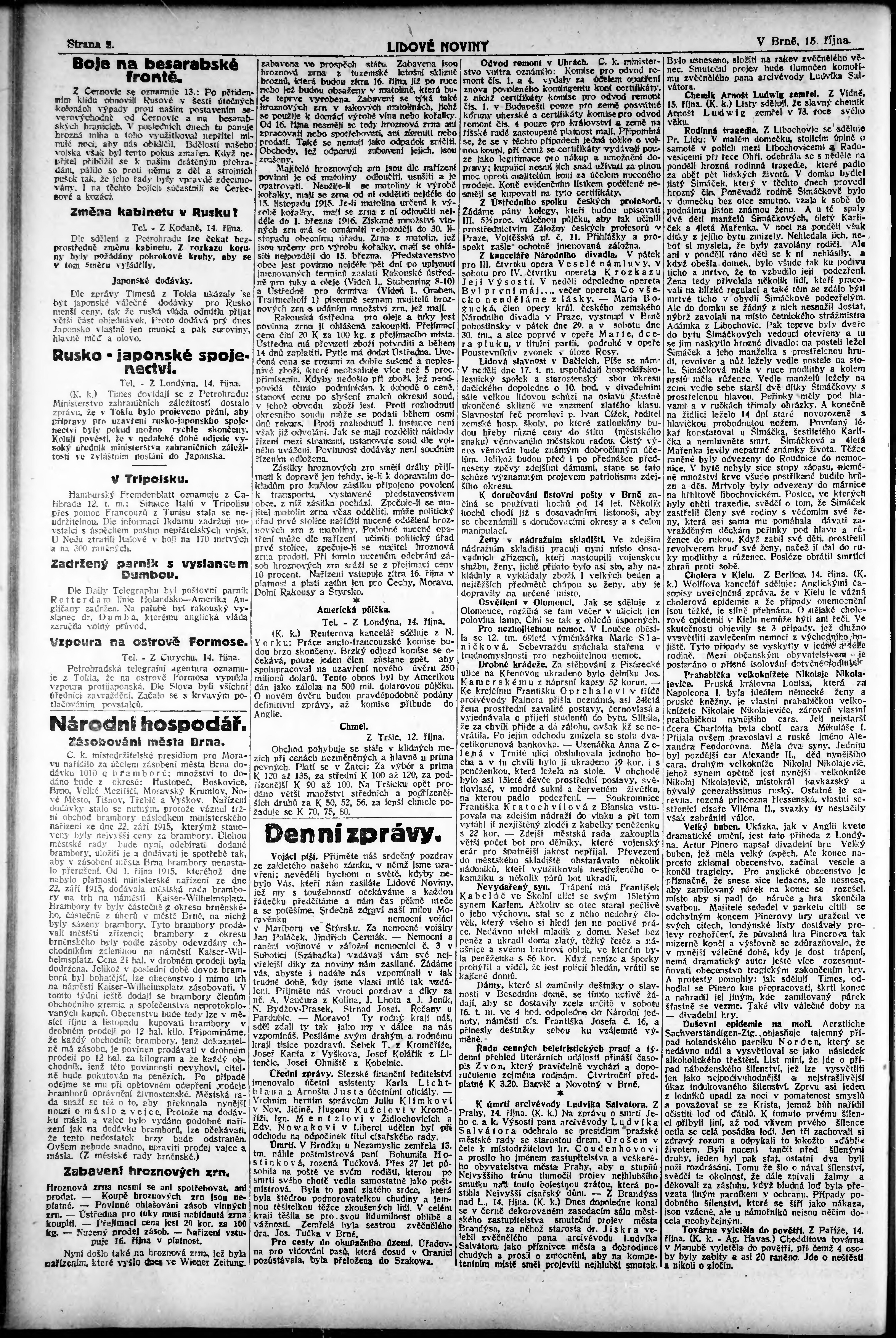 * Datum vydání výtisku: 15.10.1915 Číslo výtisku: 280 Poznámky k výtisku: odpolední vydání;