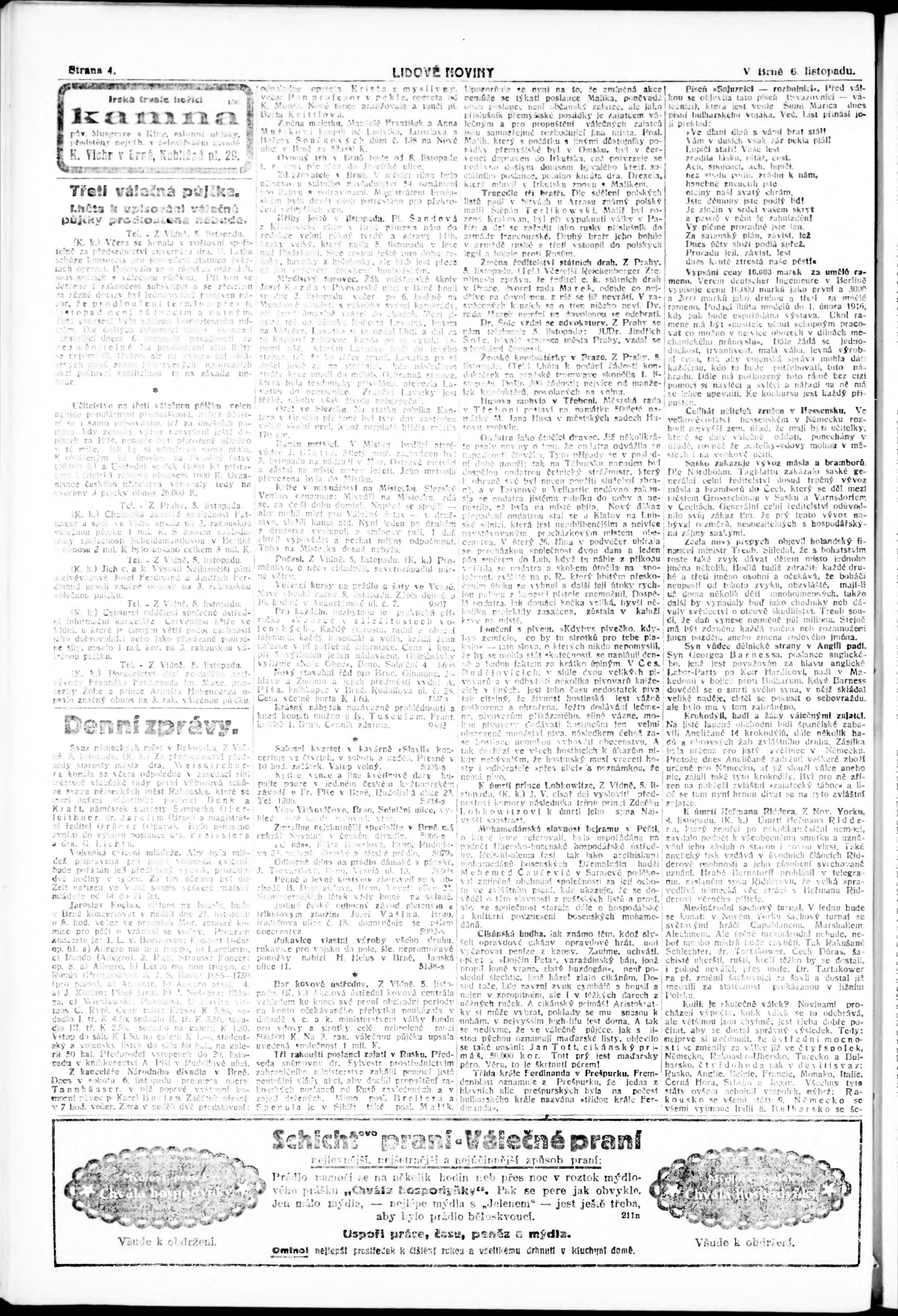 * Datum vydání výtisku: 6.11.1915 Číslo výtisku: 301 Poznámky k výtisku: ranní vydání;