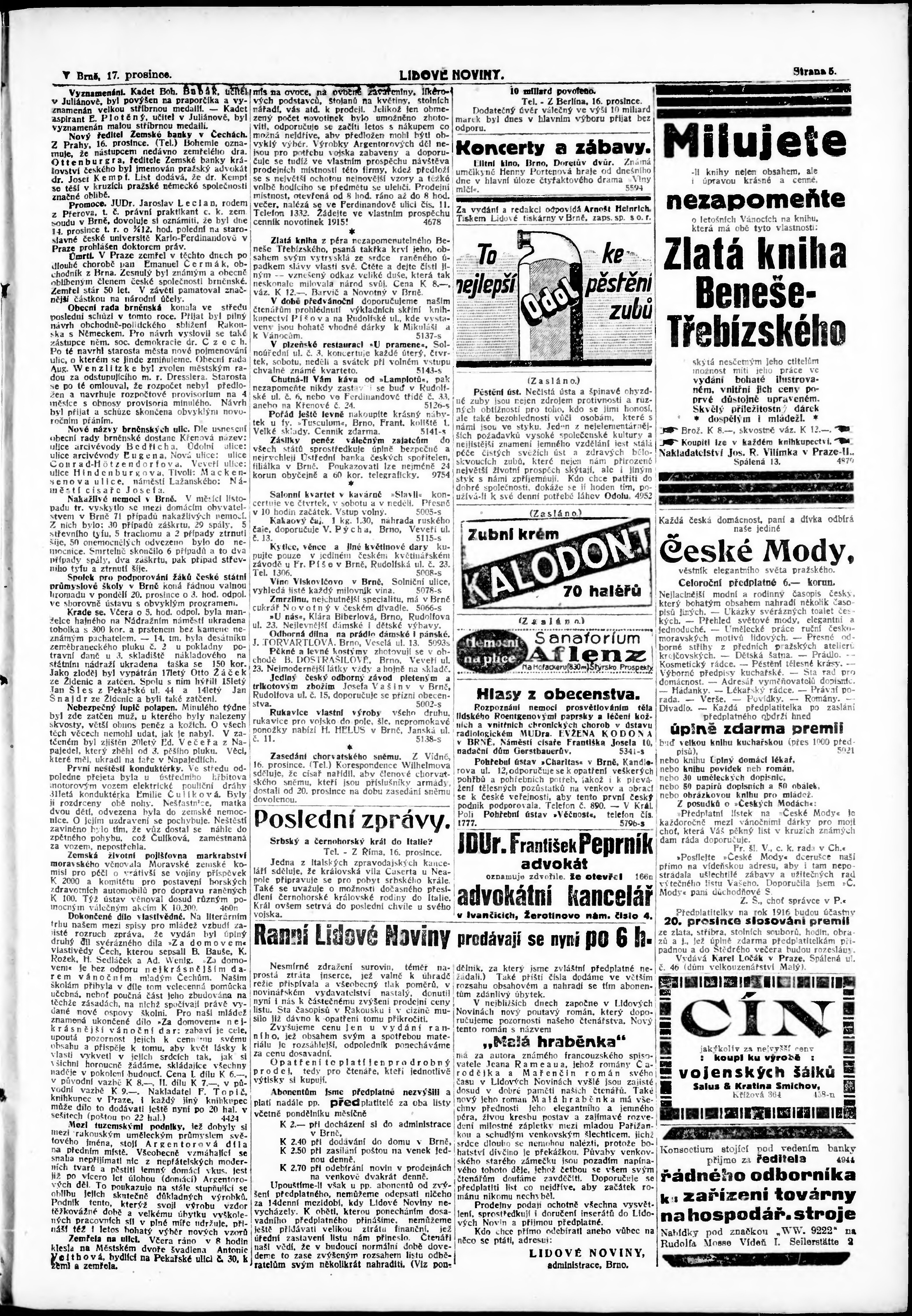 * Datum vydání výtisku: 17.12.1915 Číslo výtisku: 329 Poznámky k výtisku: ranní vydání;