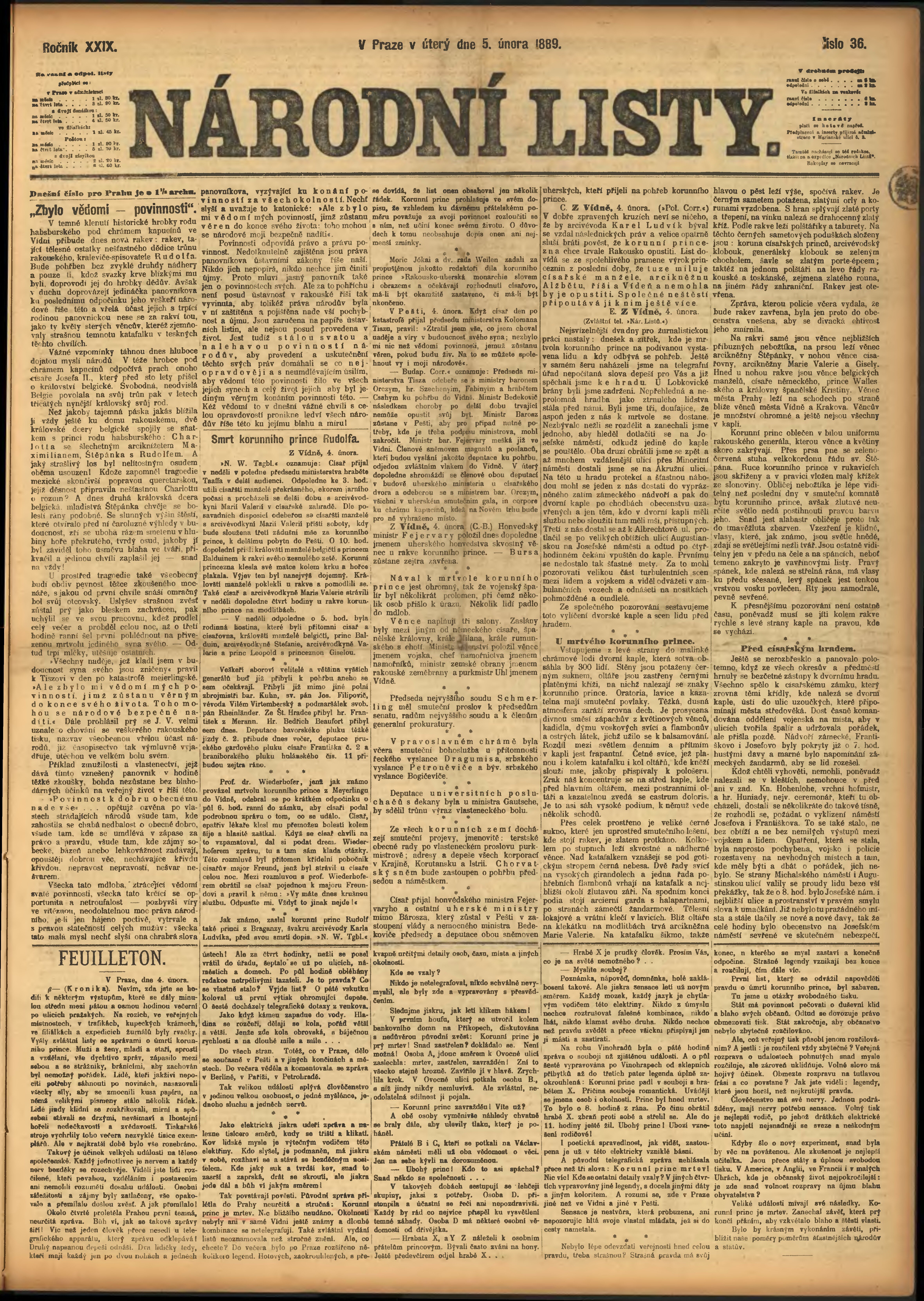 * Datum vydání výtisku: 5.2.1889 Číslo výtisku: 36