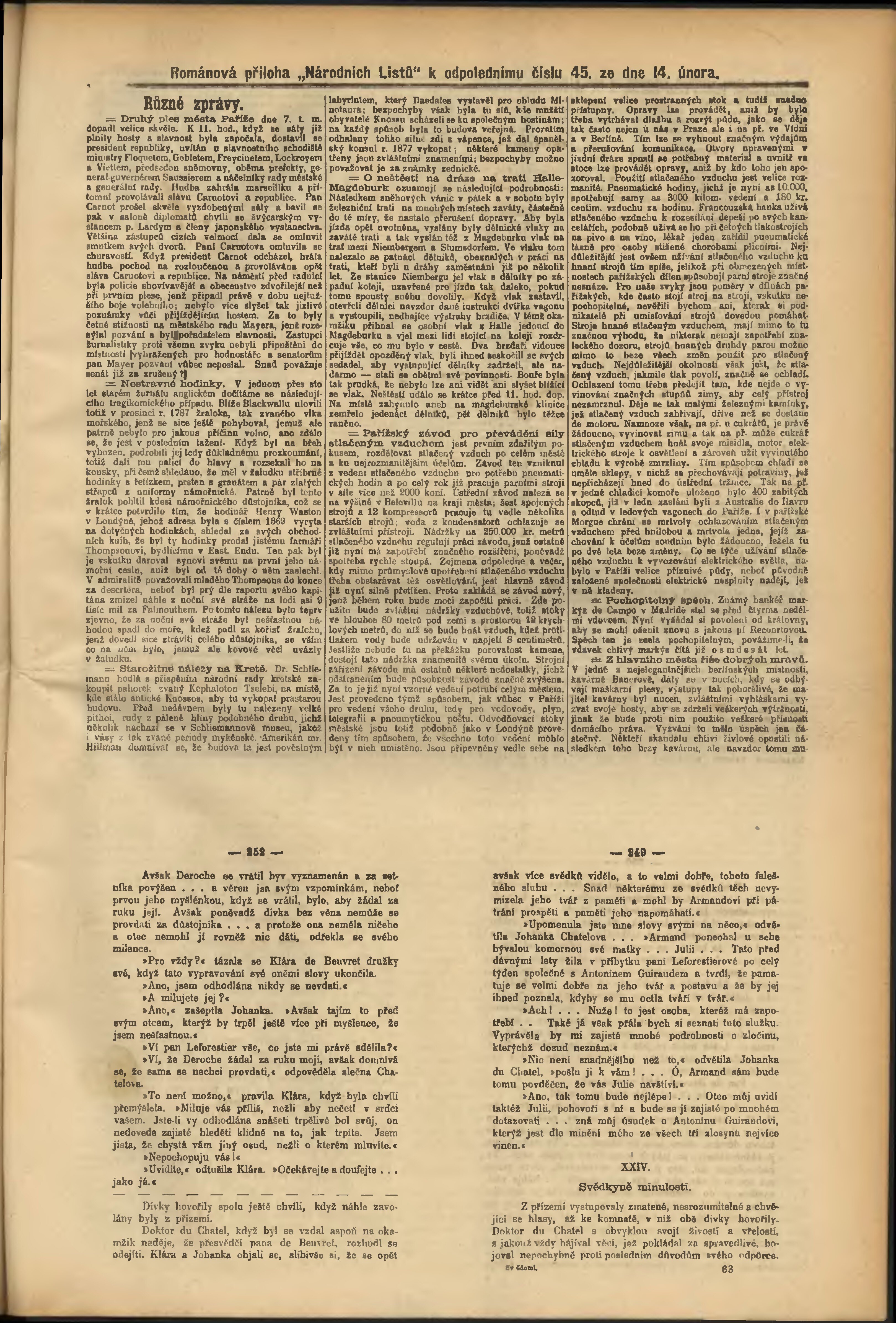 * Datum vydání výtisku: 14.2.1889 Číslo výtisku: 45 Poznámky k výtisku: odpolední vydání;
