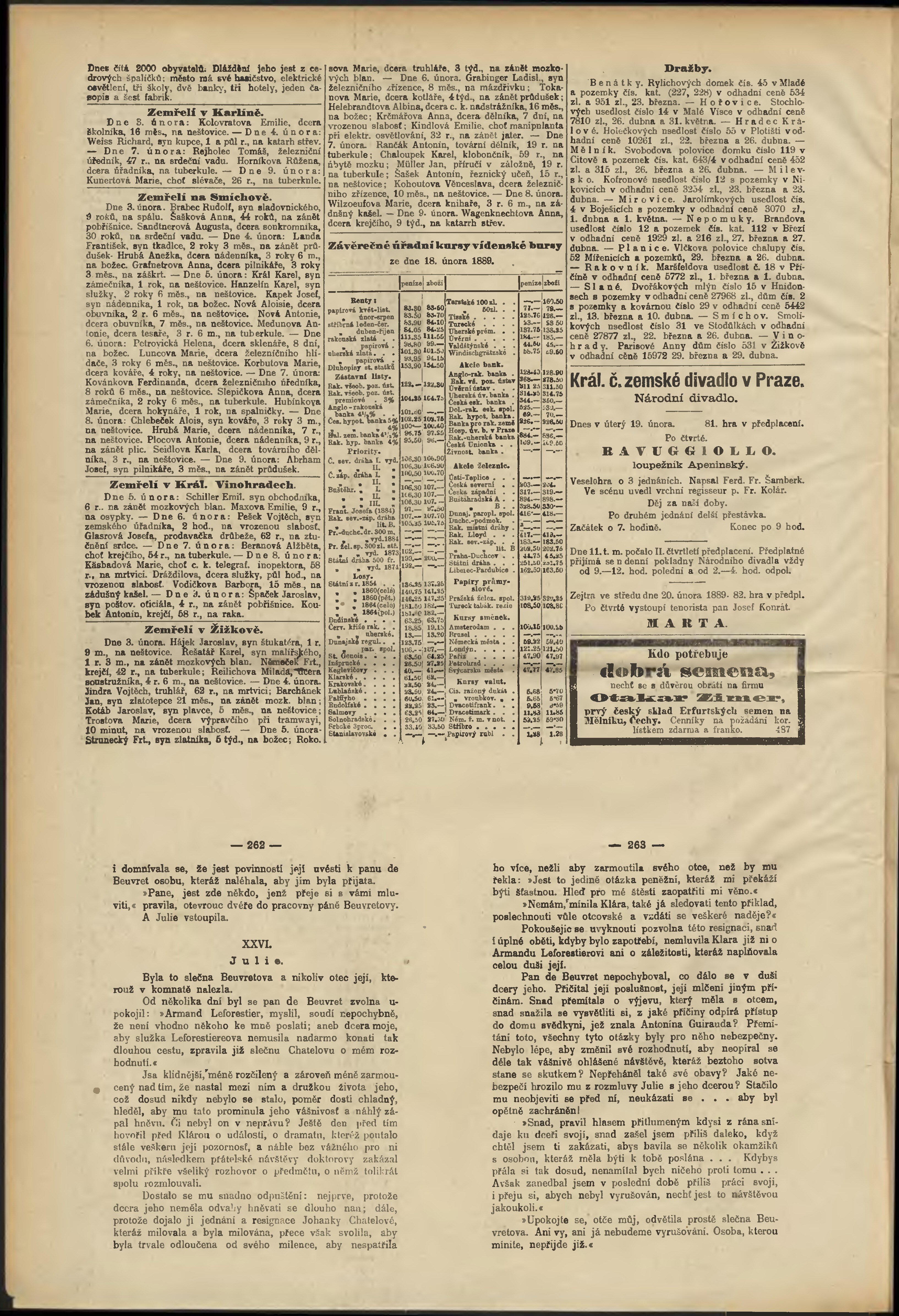 * Datum vydání výtisku: 19.2.1889 Číslo výtisku: 50 Poznámky k výtisku: odpolední vydání;
