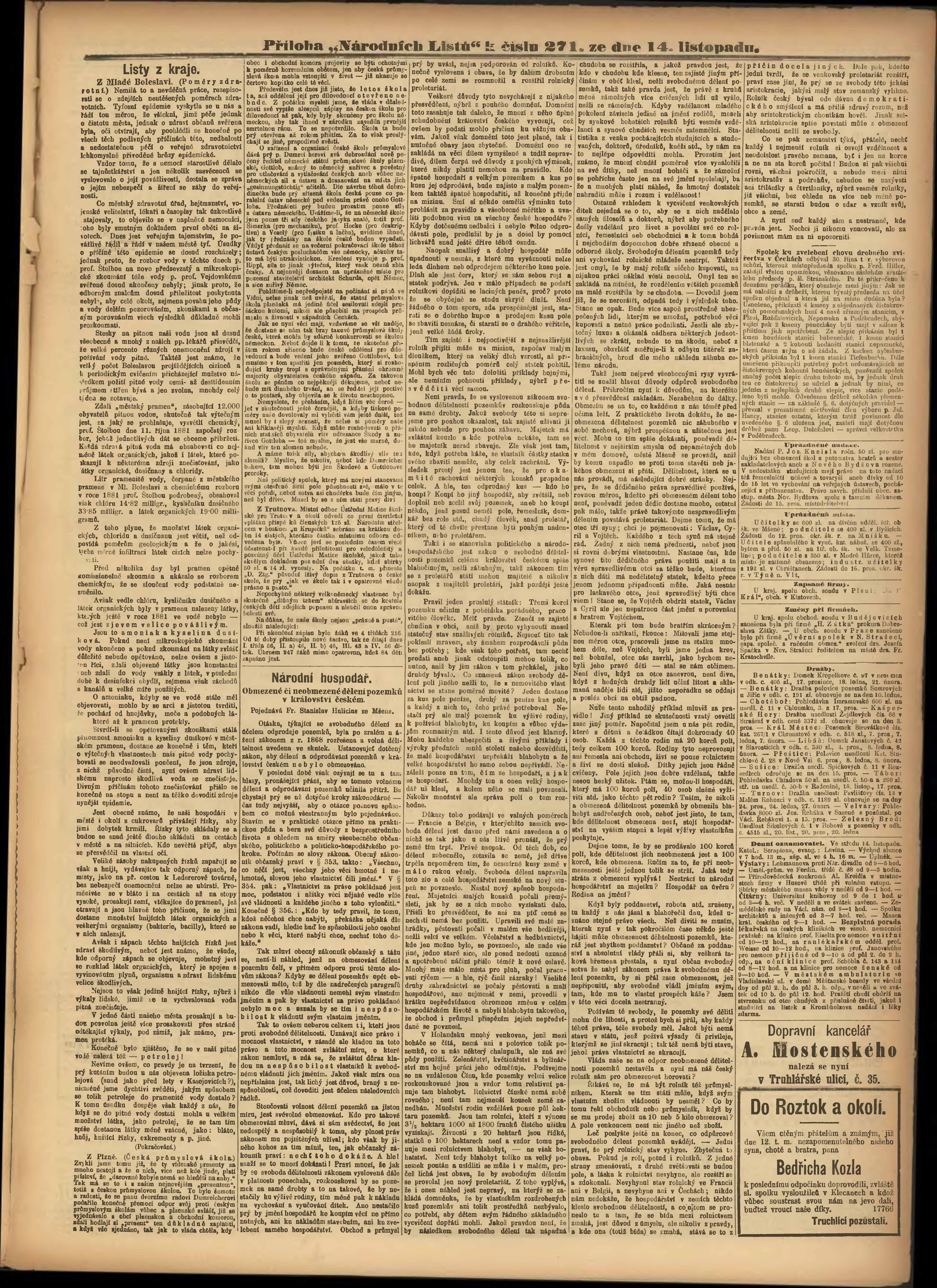 * Datum vydání výtisku: 14.11.1883 Číslo výtisku: 271