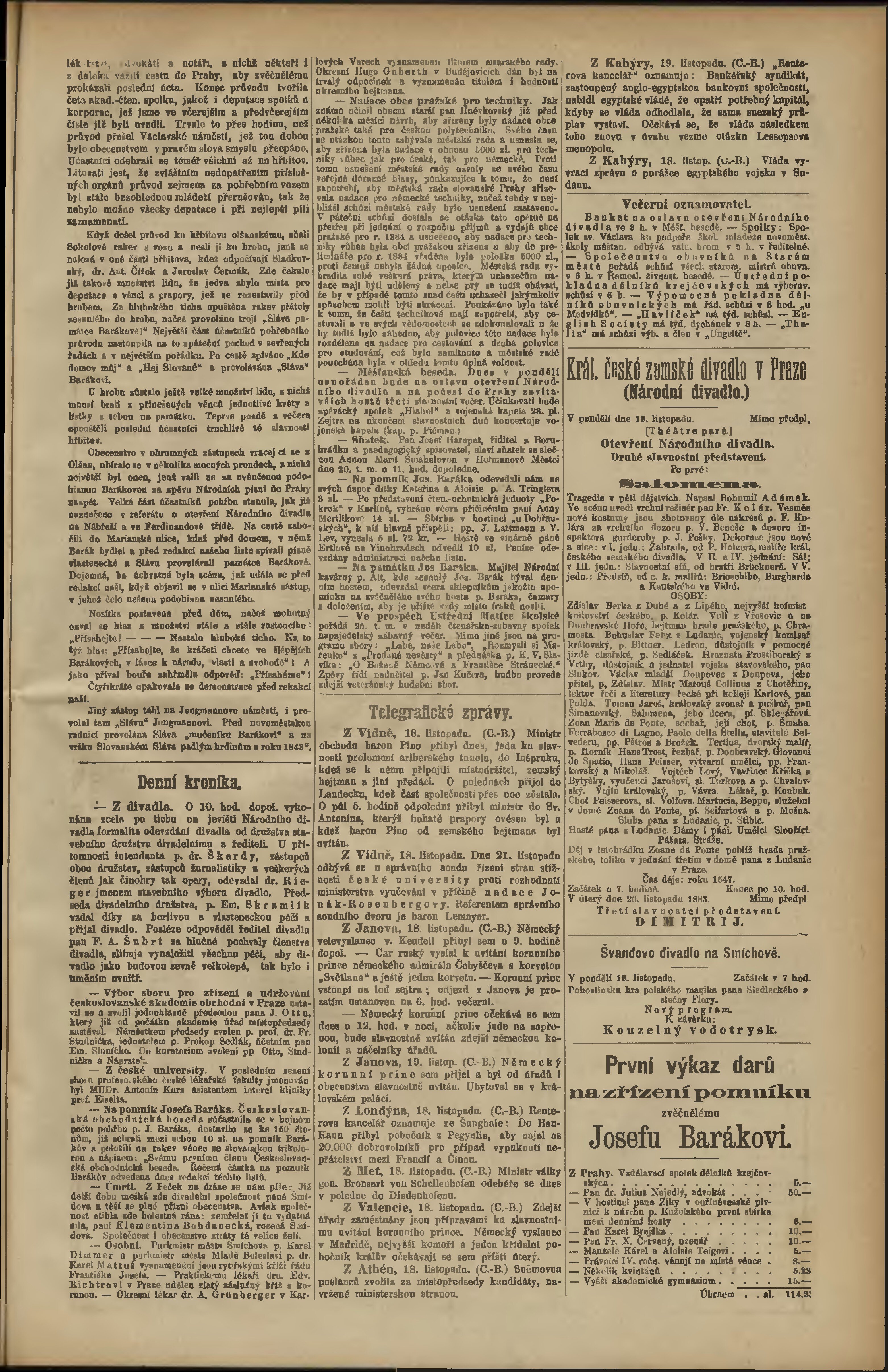 * Datum vydání výtisku: 19.11.1883 Číslo výtisku: 275 Poznámky k výtisku: odpolední vydání;
