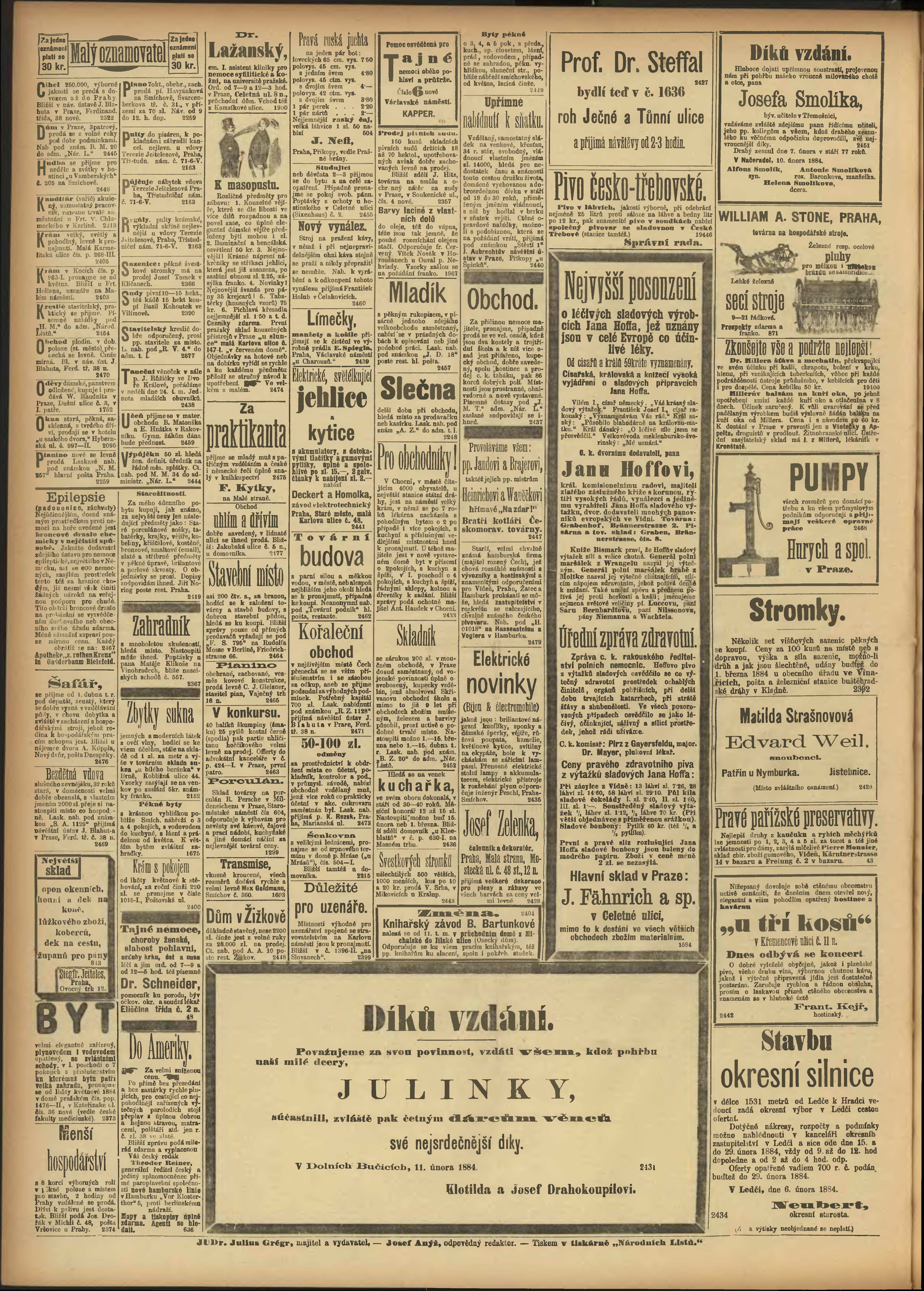 * Datum vydání výtisku: 13.2.1884 Číslo výtisku: 44