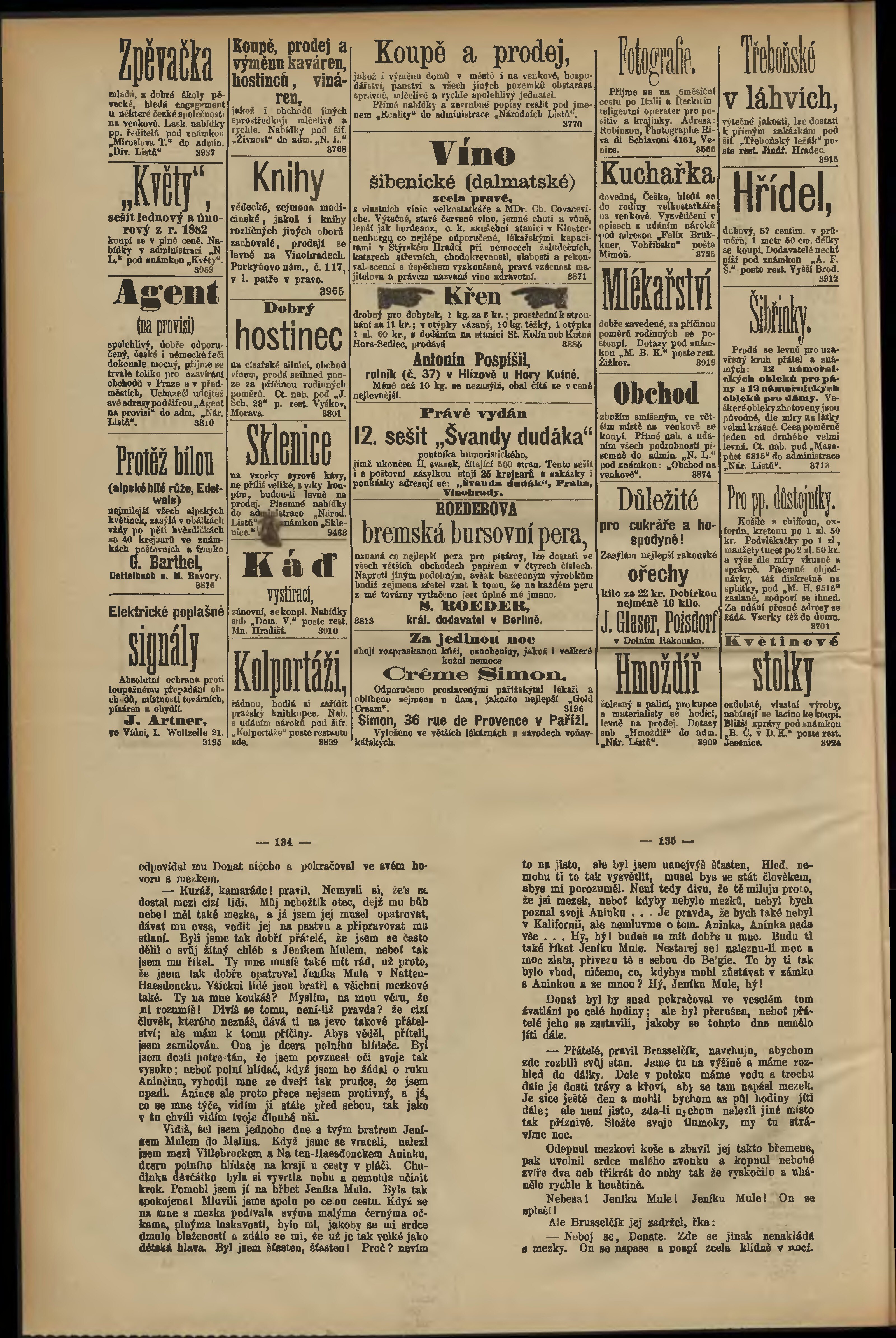 * Datum vydání výtisku: 14.2.1884 Číslo výtisku: 45 Poznámky k výtisku: odpolední vydání;