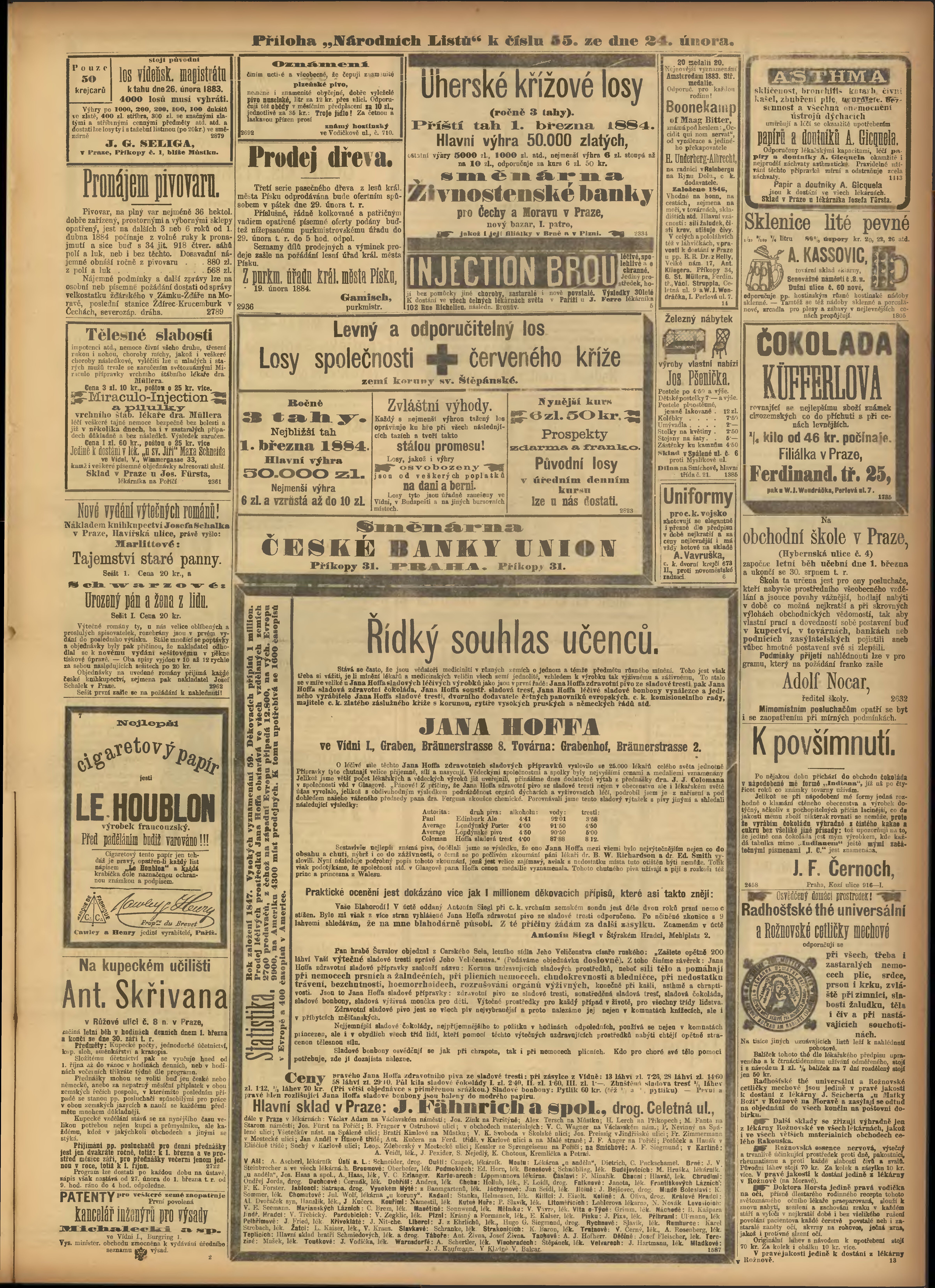 * Datum vydání výtisku: 24.2.1884 Číslo výtisku: 55