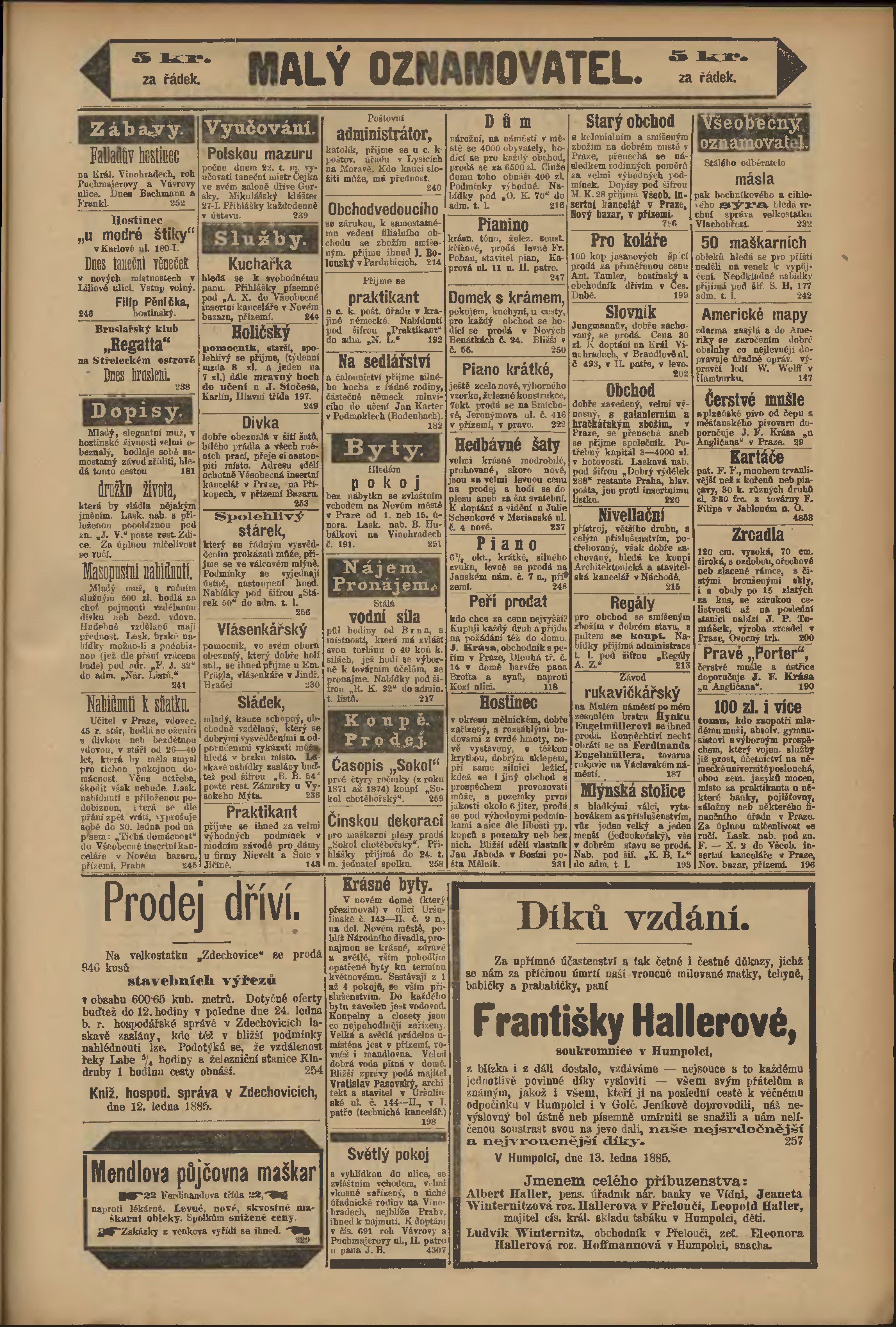 * Datum vydání výtisku: 14.1.1885 Číslo výtisku: 14 Poznámky k výtisku: odpolední vydání;