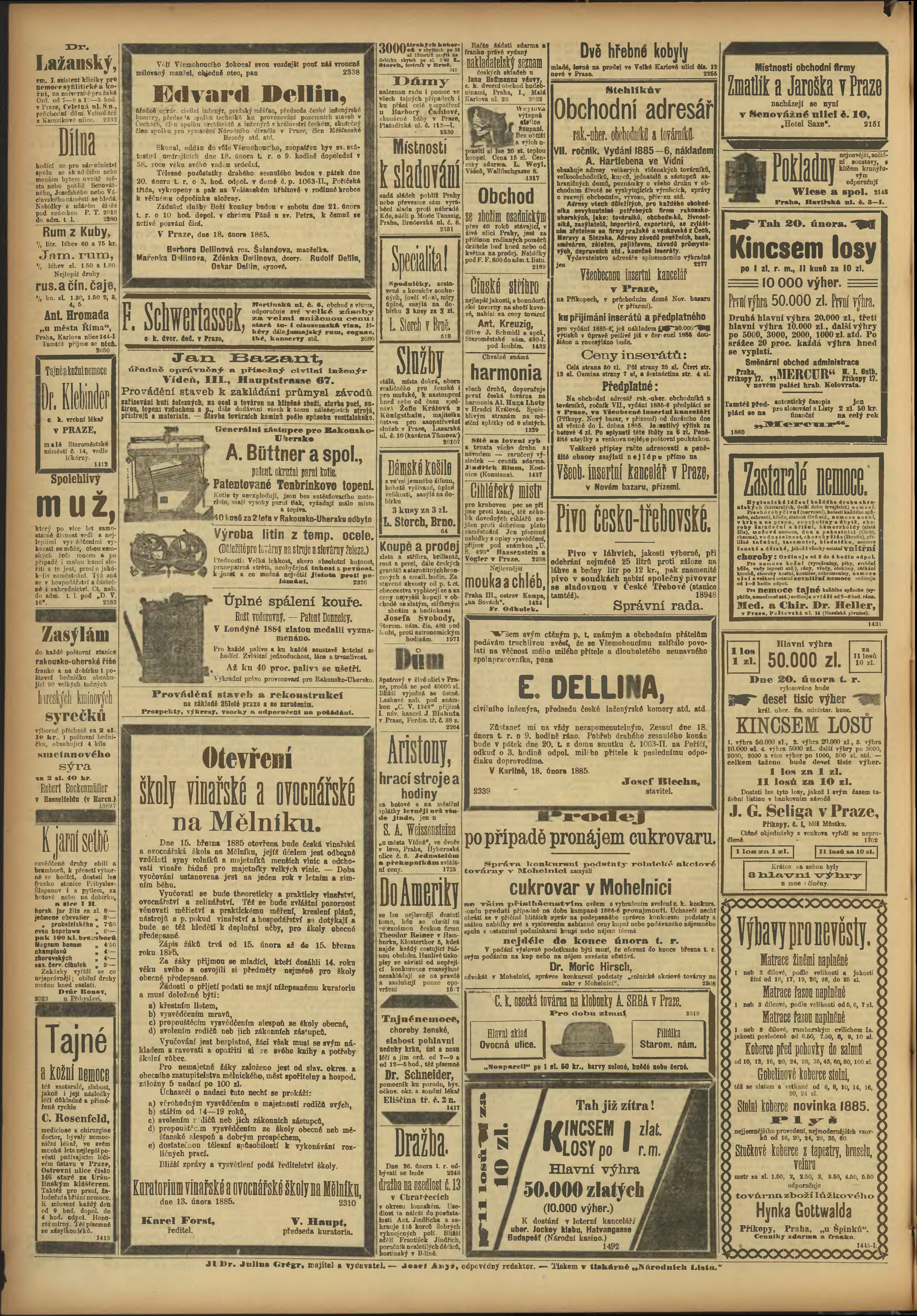 * Datum vydání výtisku: 19.2.1885 Číslo výtisku: 49