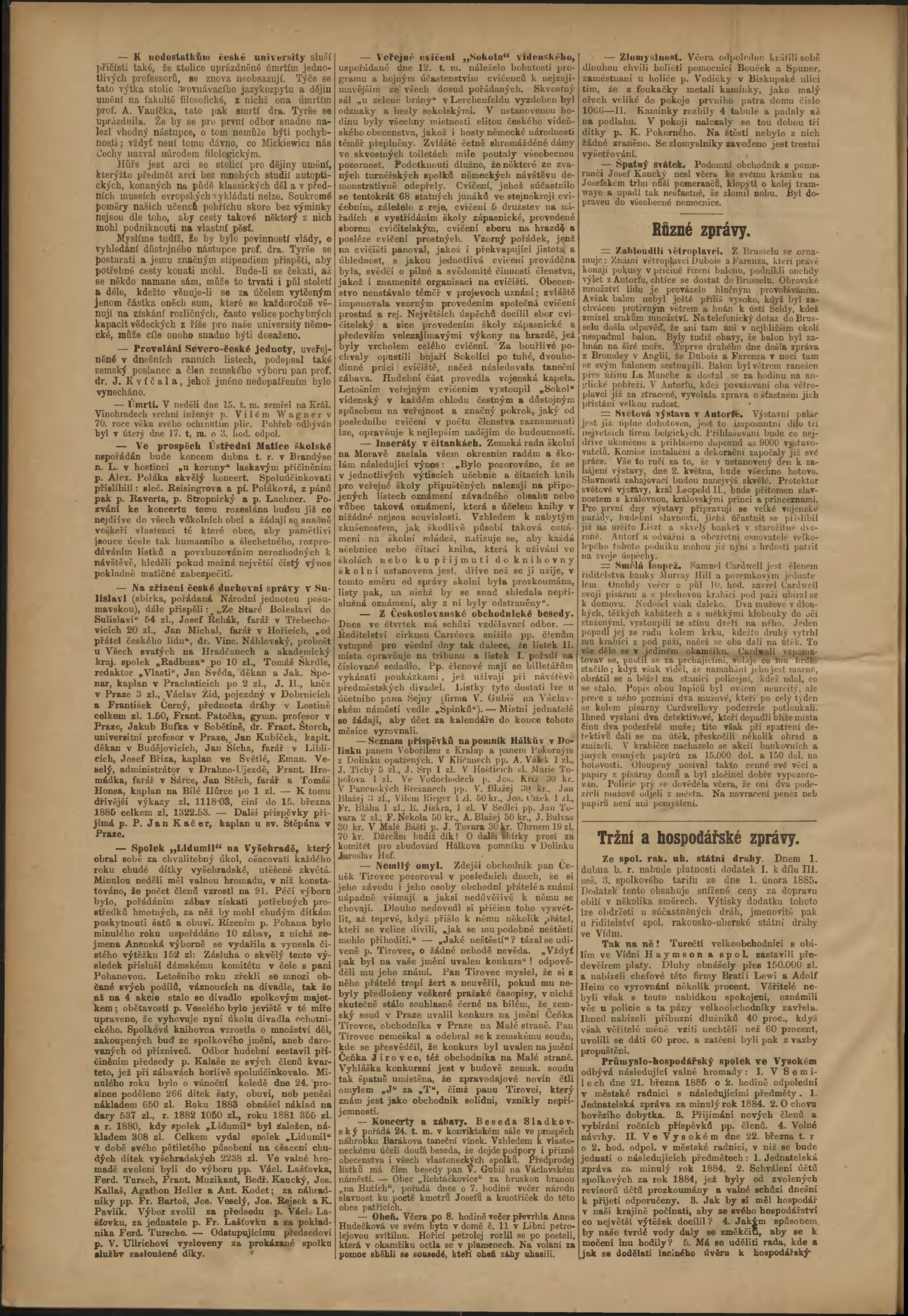 * Datum vydání výtisku: 19.3.1885 Číslo výtisku: 77 Poznámky k výtisku: odpolední vydání;