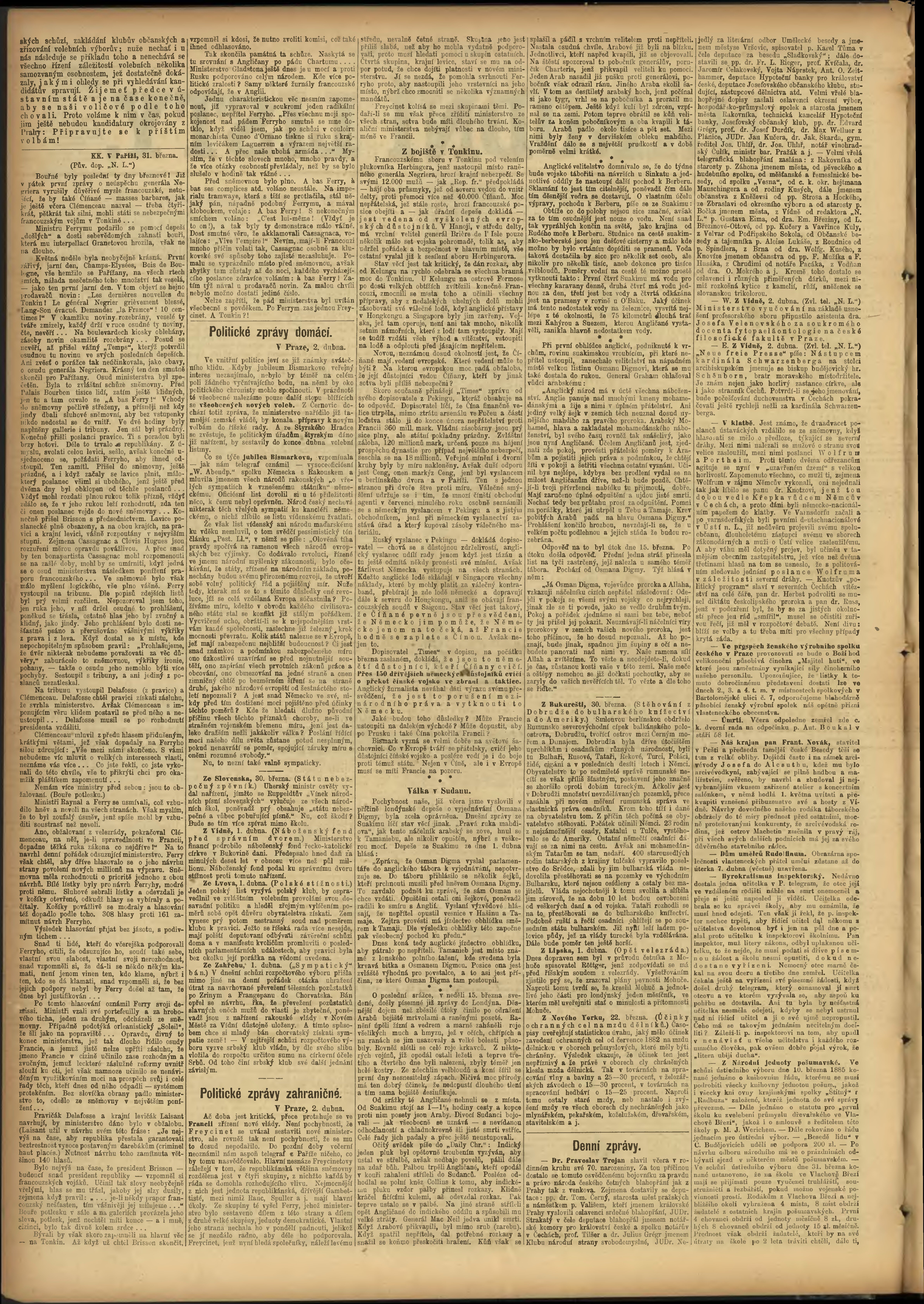 * Datum vydání výtisku: 3.4.1885 Číslo výtisku: 92
