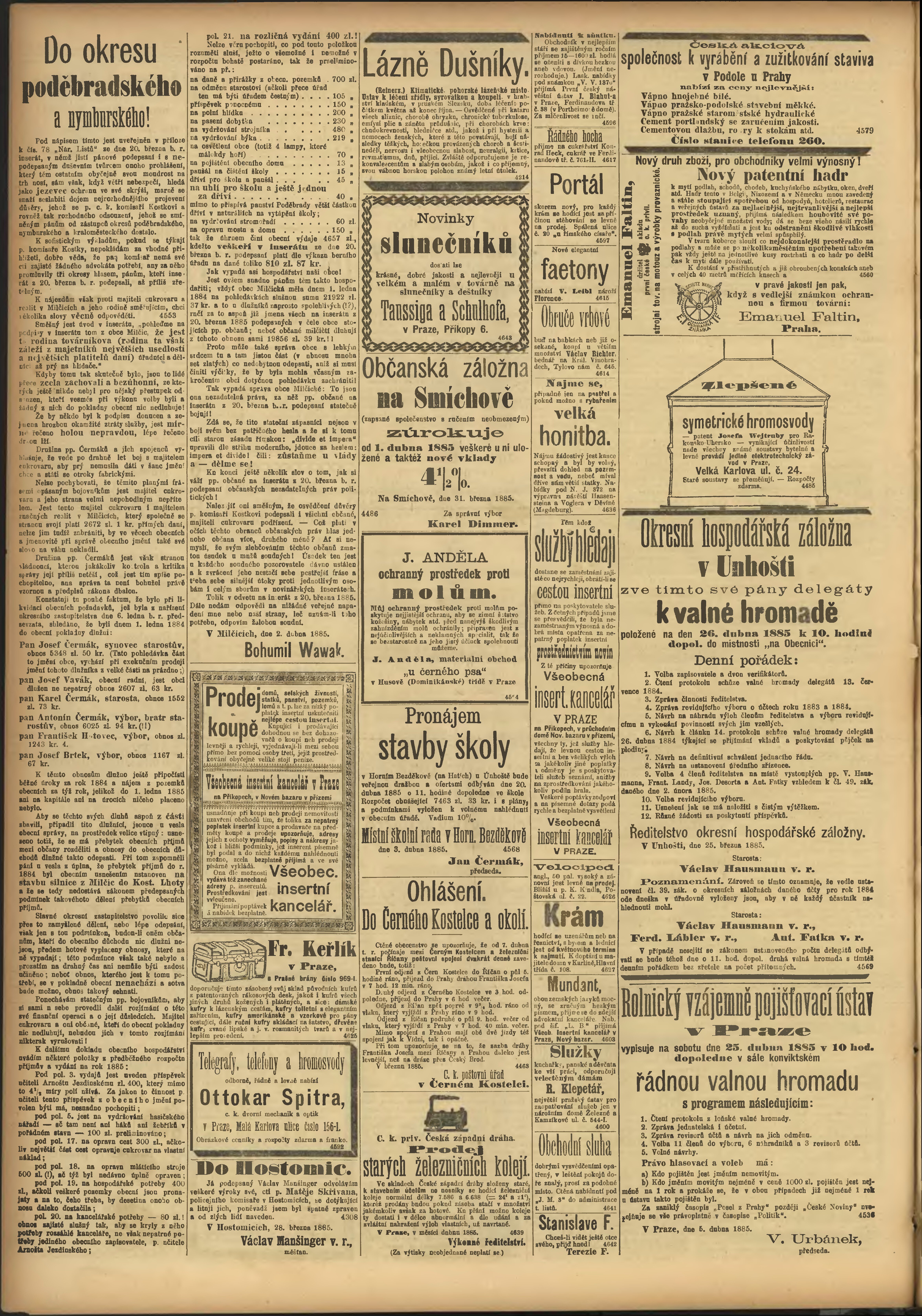* Datum vydání výtisku: 5.4.1885 Číslo výtisku: 94