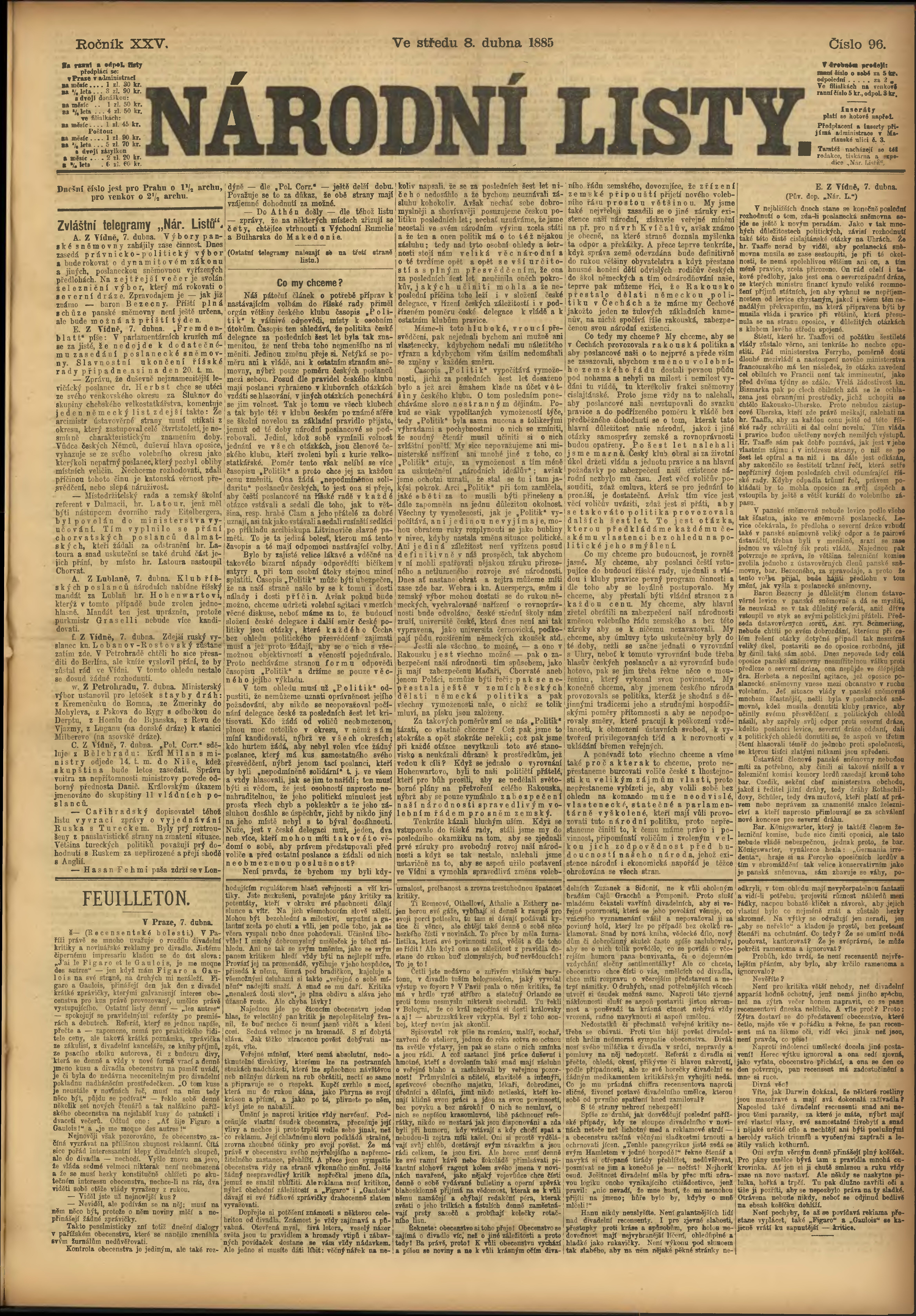 * Datum vydání výtisku: 8.4.1885 Číslo výtisku: 96