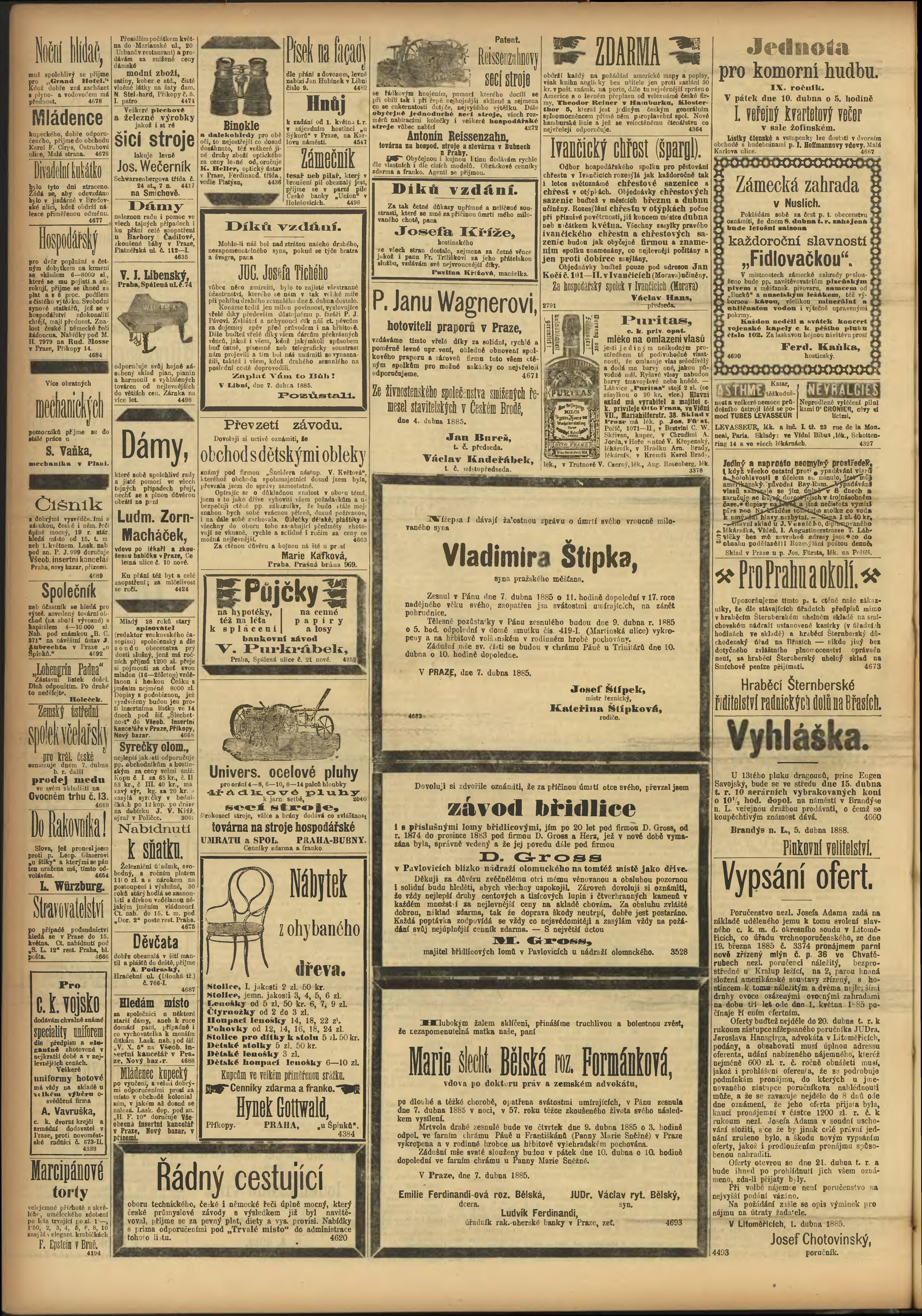 * Datum vydání výtisku: 8.4.1885 Číslo výtisku: 96