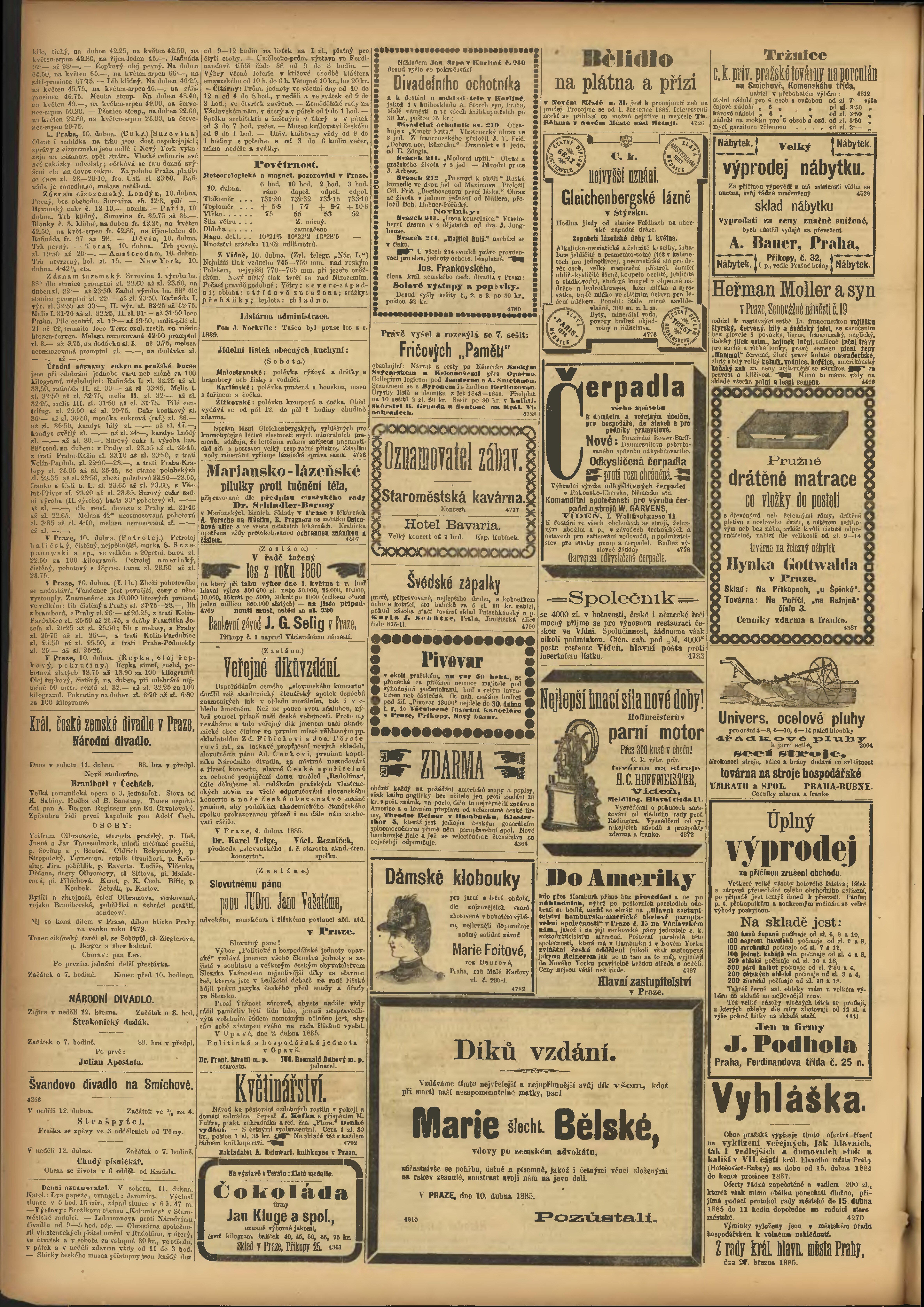 * Datum vydání výtisku: 11.4.1885 Číslo výtisku: 99