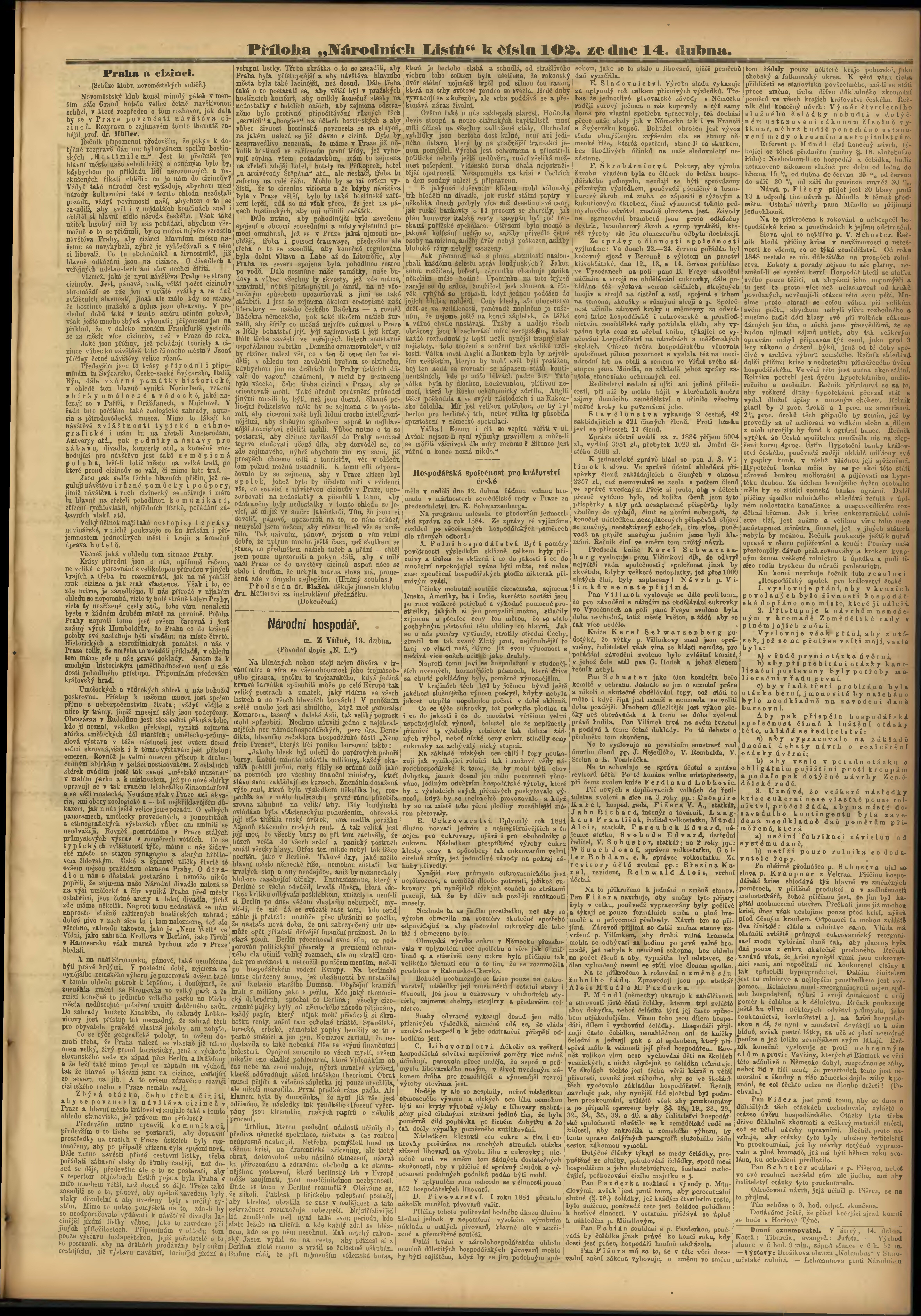 * Datum vydání výtisku: 14.4.1885 Číslo výtisku: 102