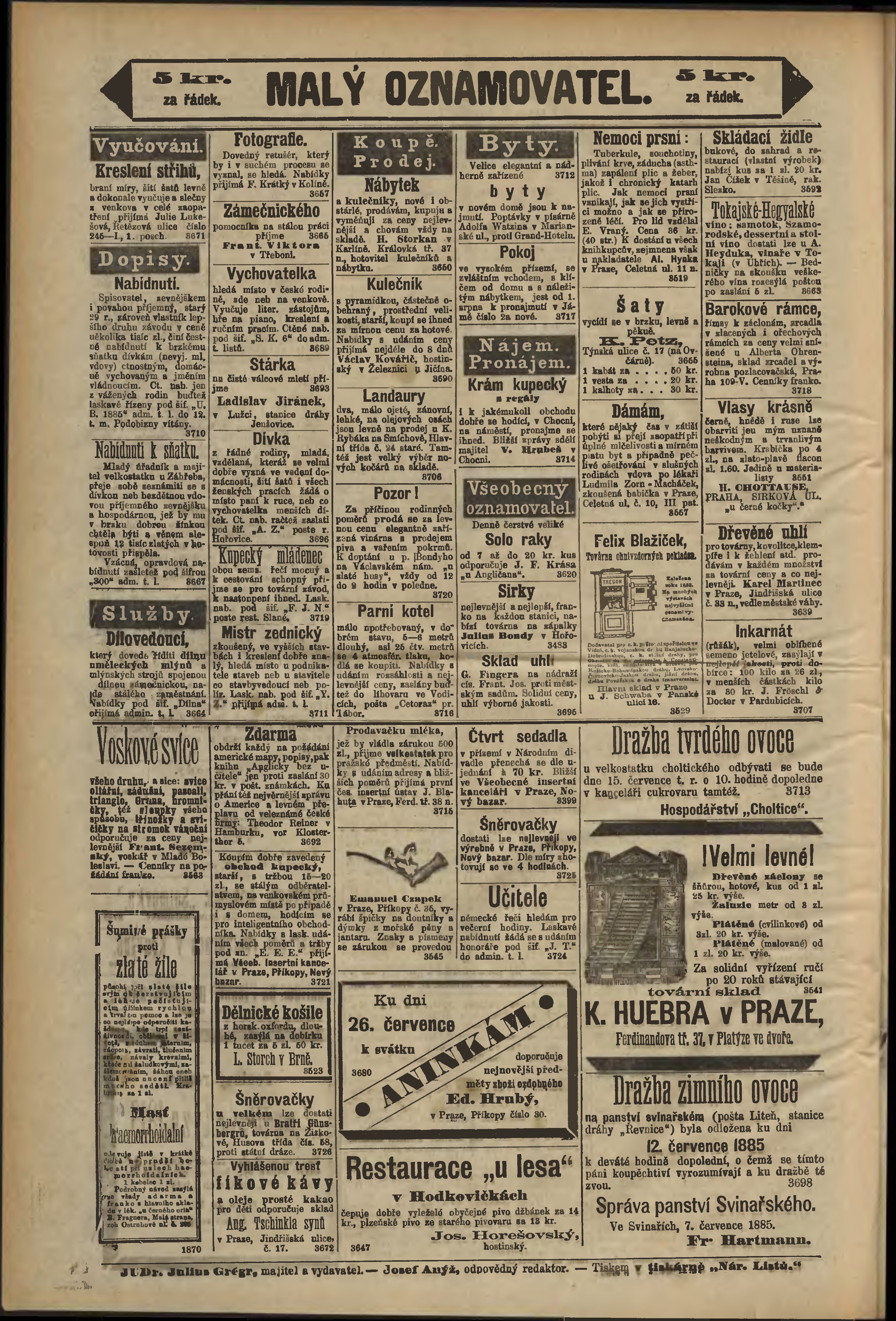 * Datum vydání výtisku: 9.7.1885 Číslo výtisku: 186 Poznámky k výtisku: odpolední vydání;