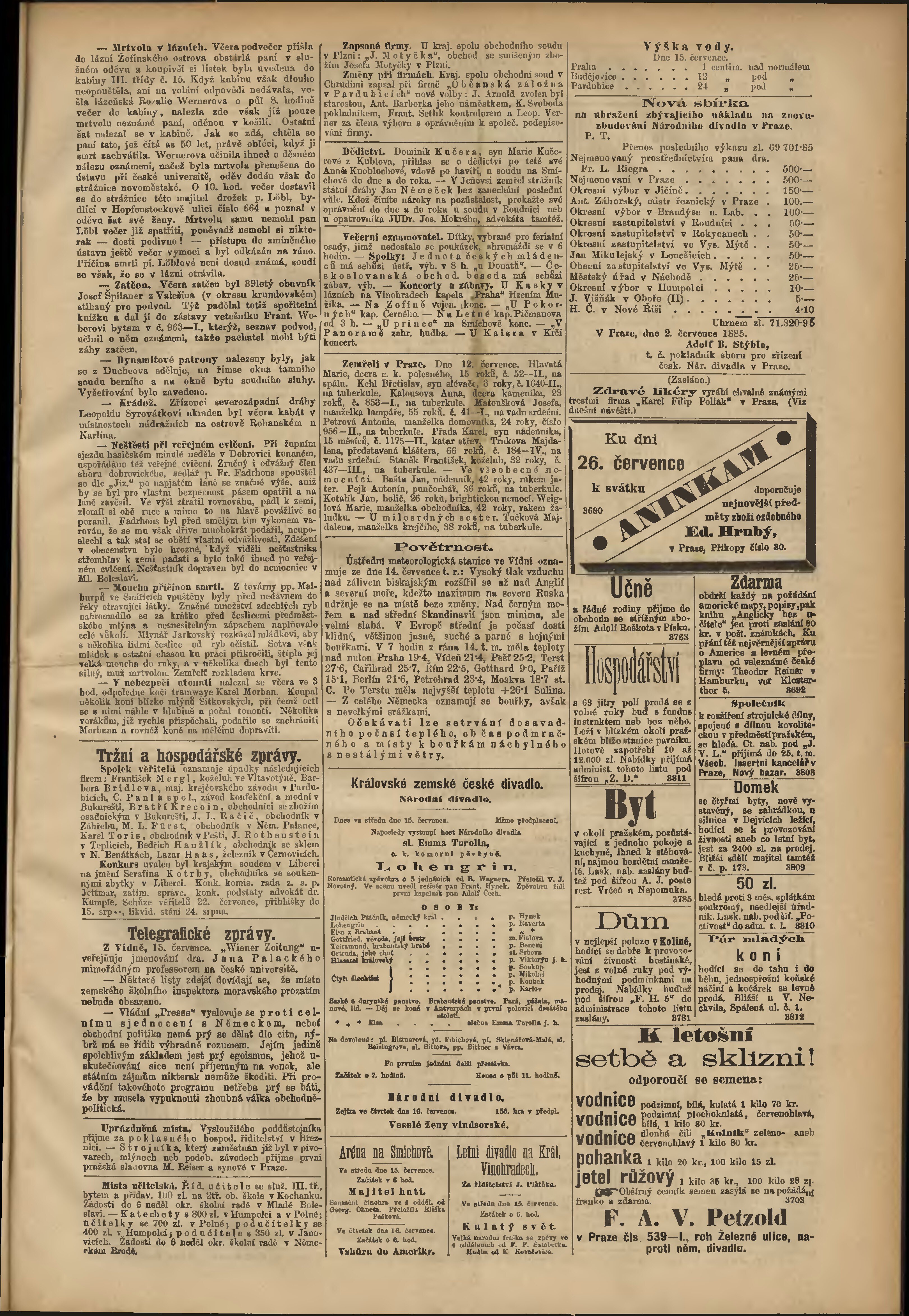 * Datum vydání výtisku: 15.7.1885 Číslo výtisku: 192 Poznámky k výtisku: odpolední vydání;