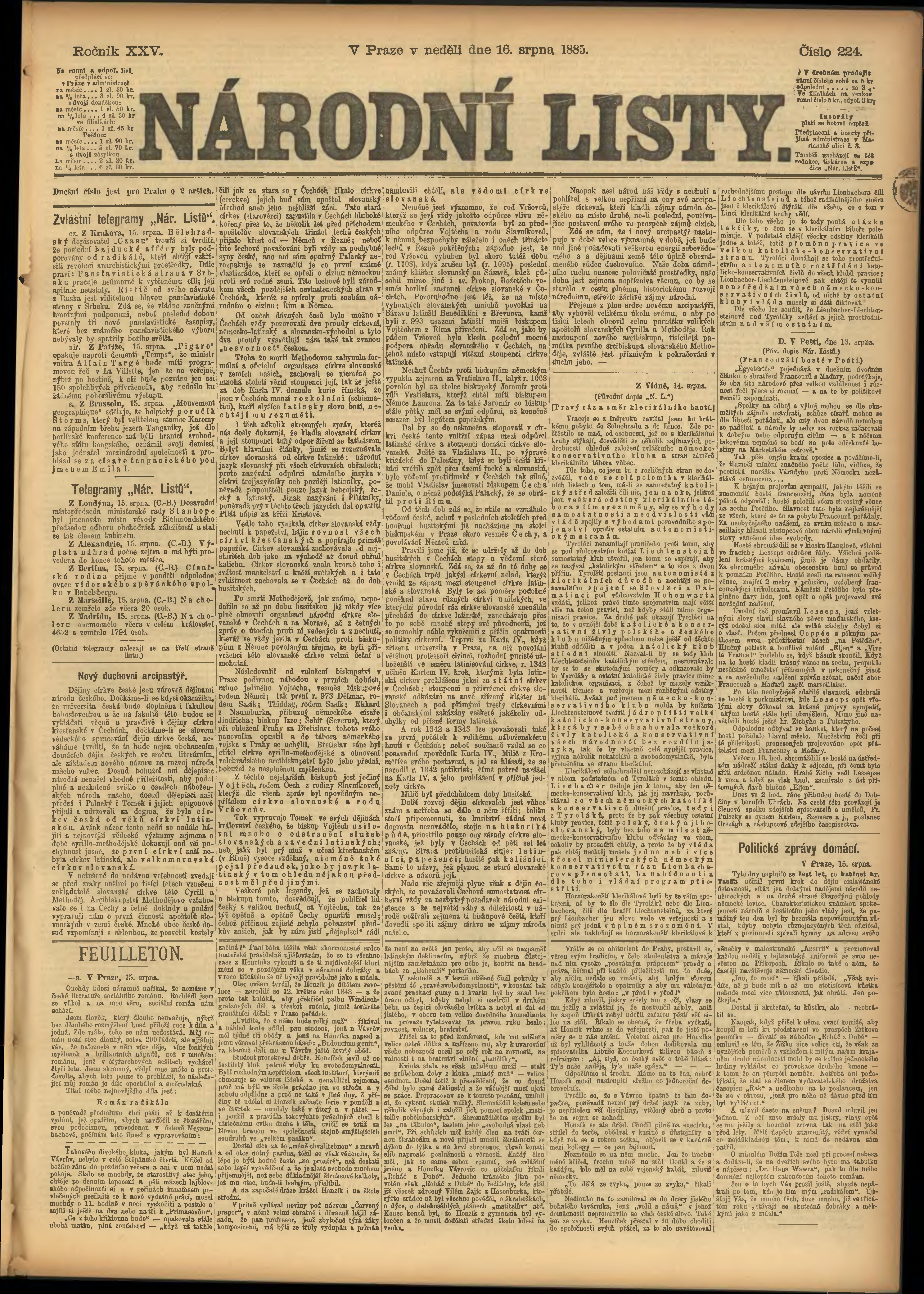* Datum vydání výtisku: 16.8.1885 Číslo výtisku: 224