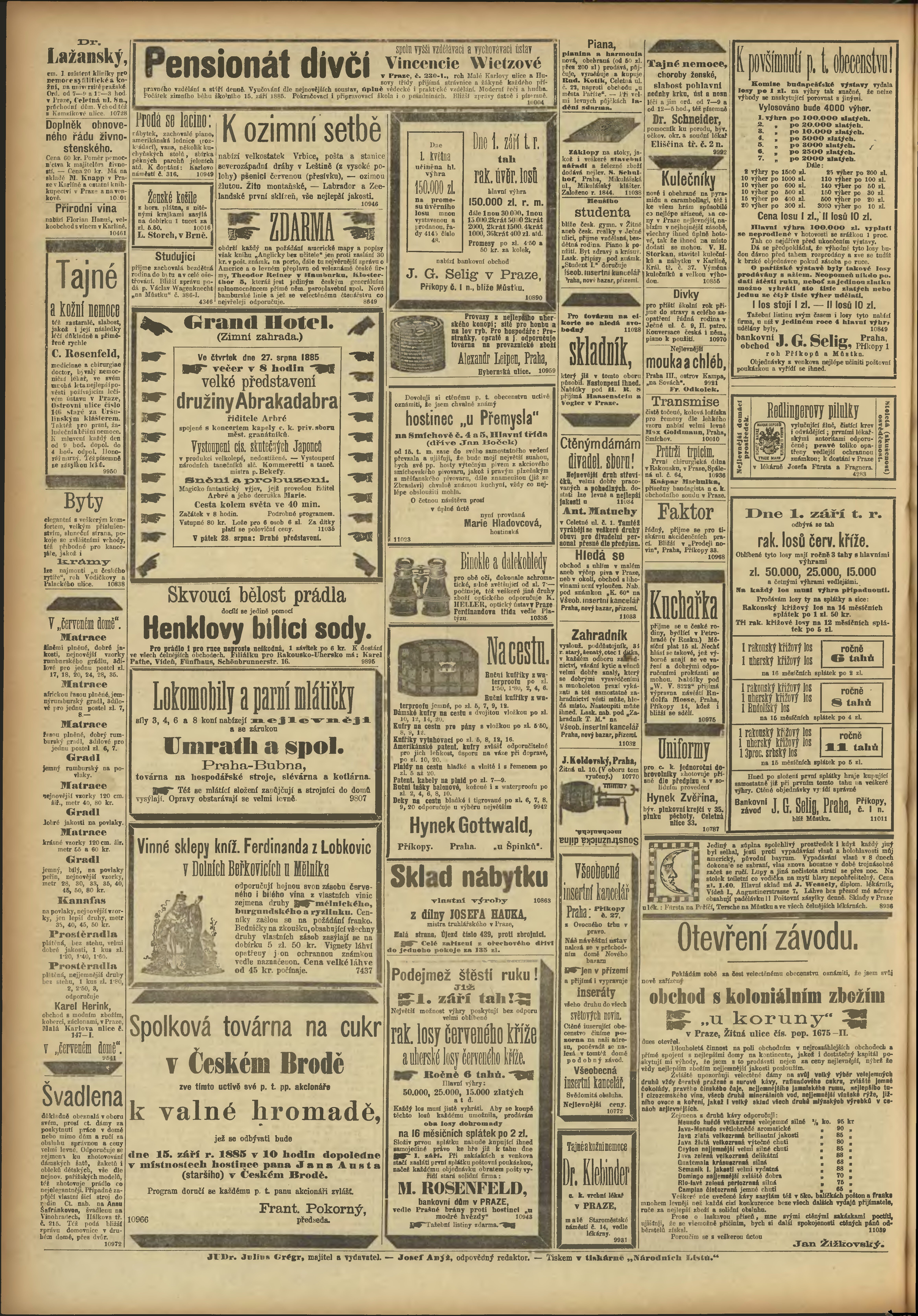 * Datum vydání výtisku: 27.8.1885 Číslo výtisku: 235