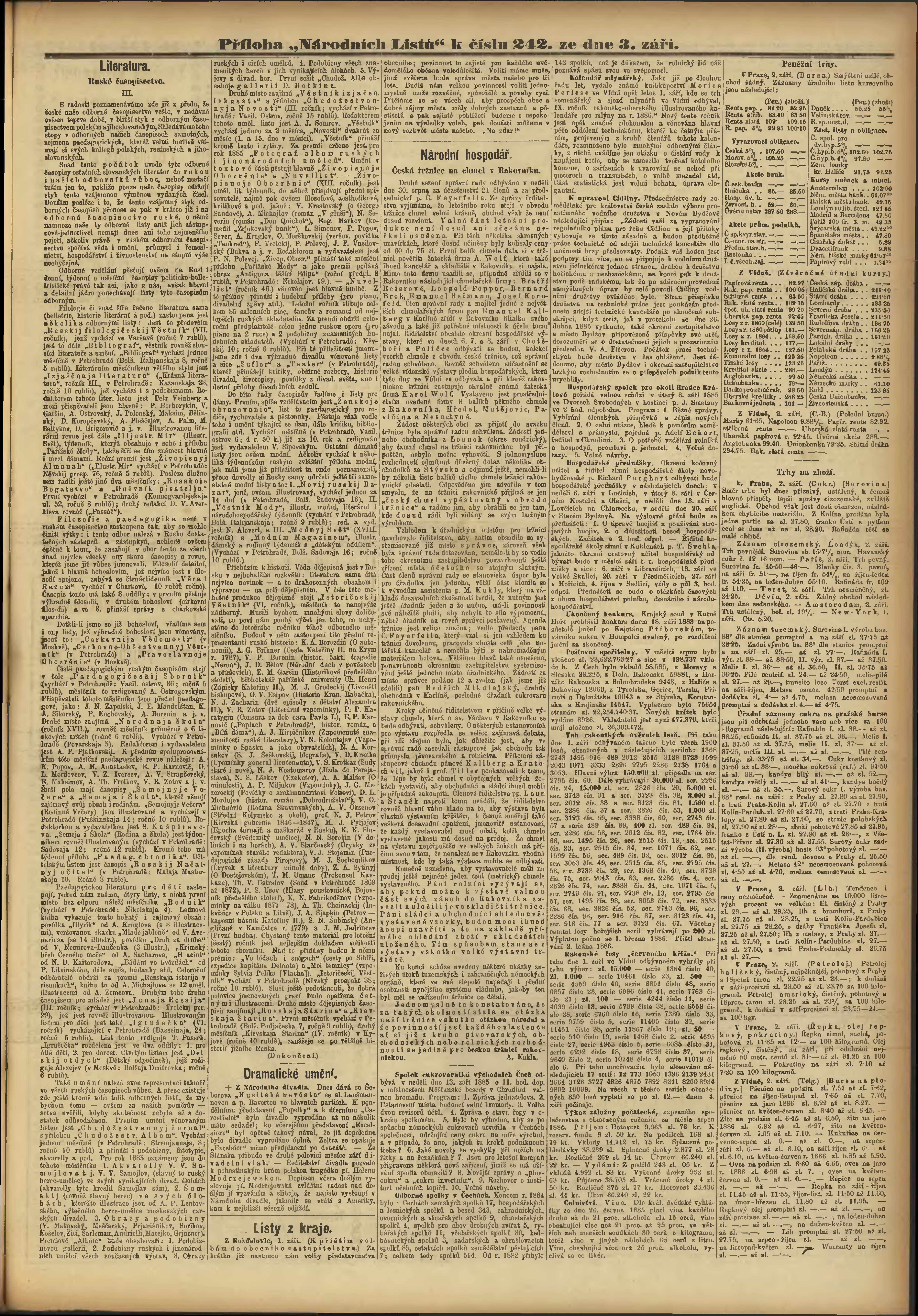 * Datum vydání výtisku: 3.9.1885 Číslo výtisku: 242