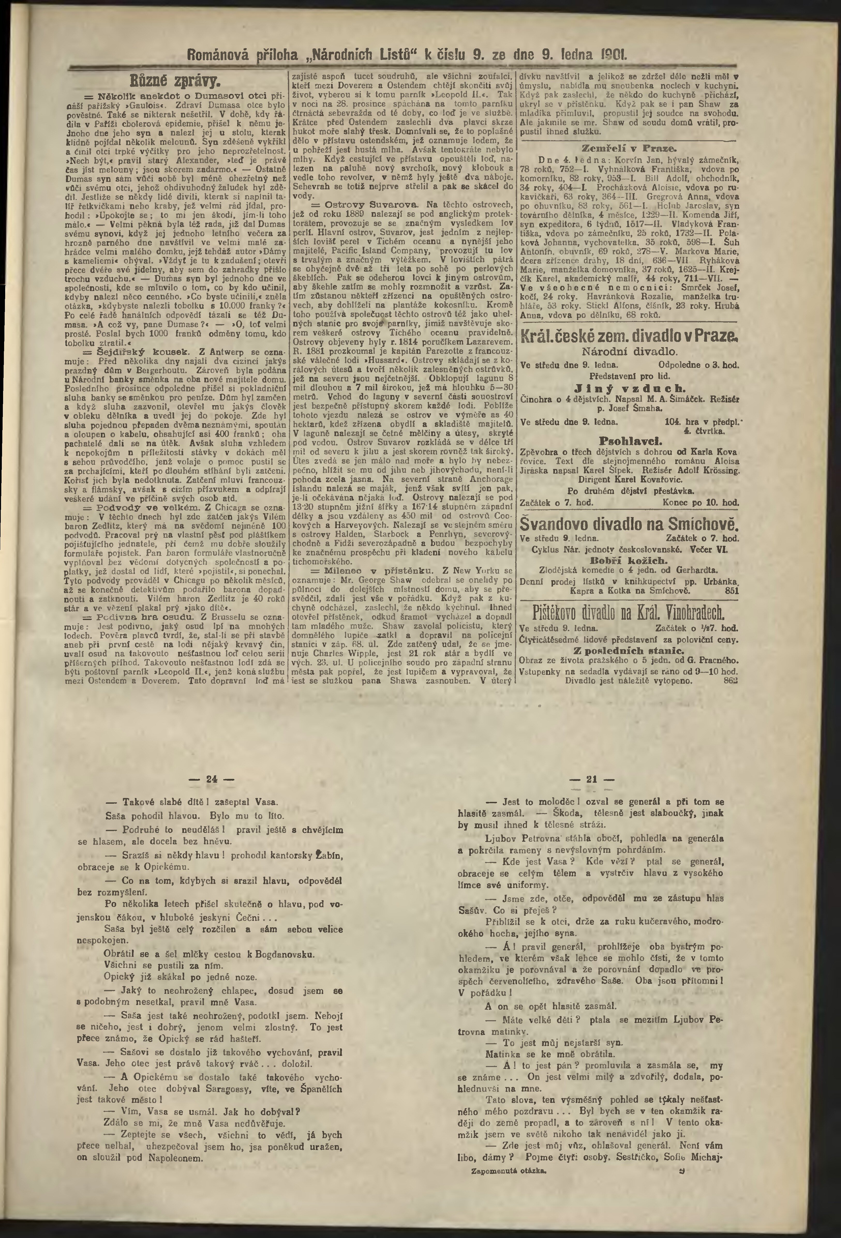 * Datum vydání výtisku: 9.1.1901 Číslo výtisku: 9 Poznámky k výtisku: odpolední vydání;