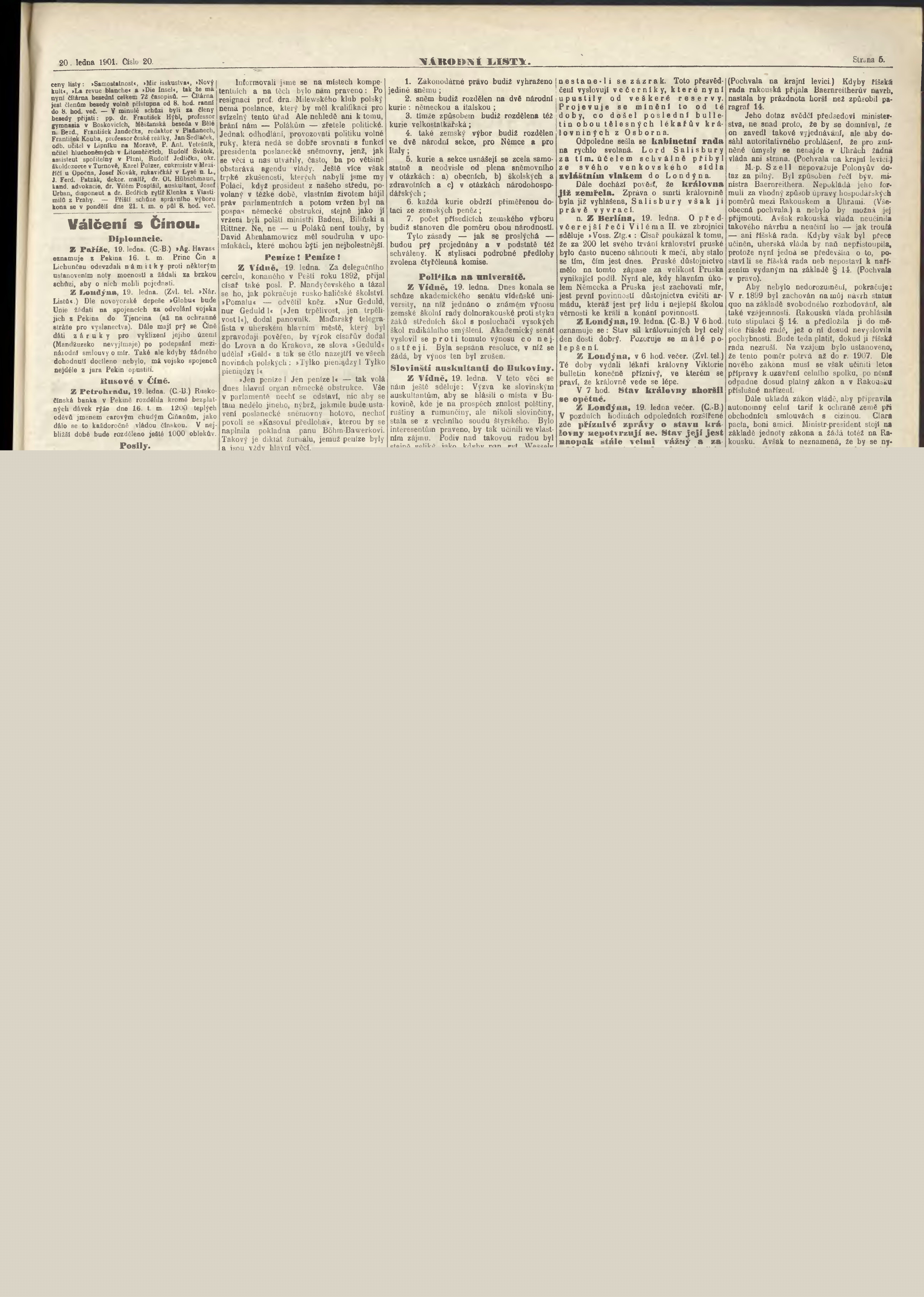 * Datum vydání výtisku: 20.1.1901 Číslo výtisku: 20 Poznámky k výtisku: ranní vydání;