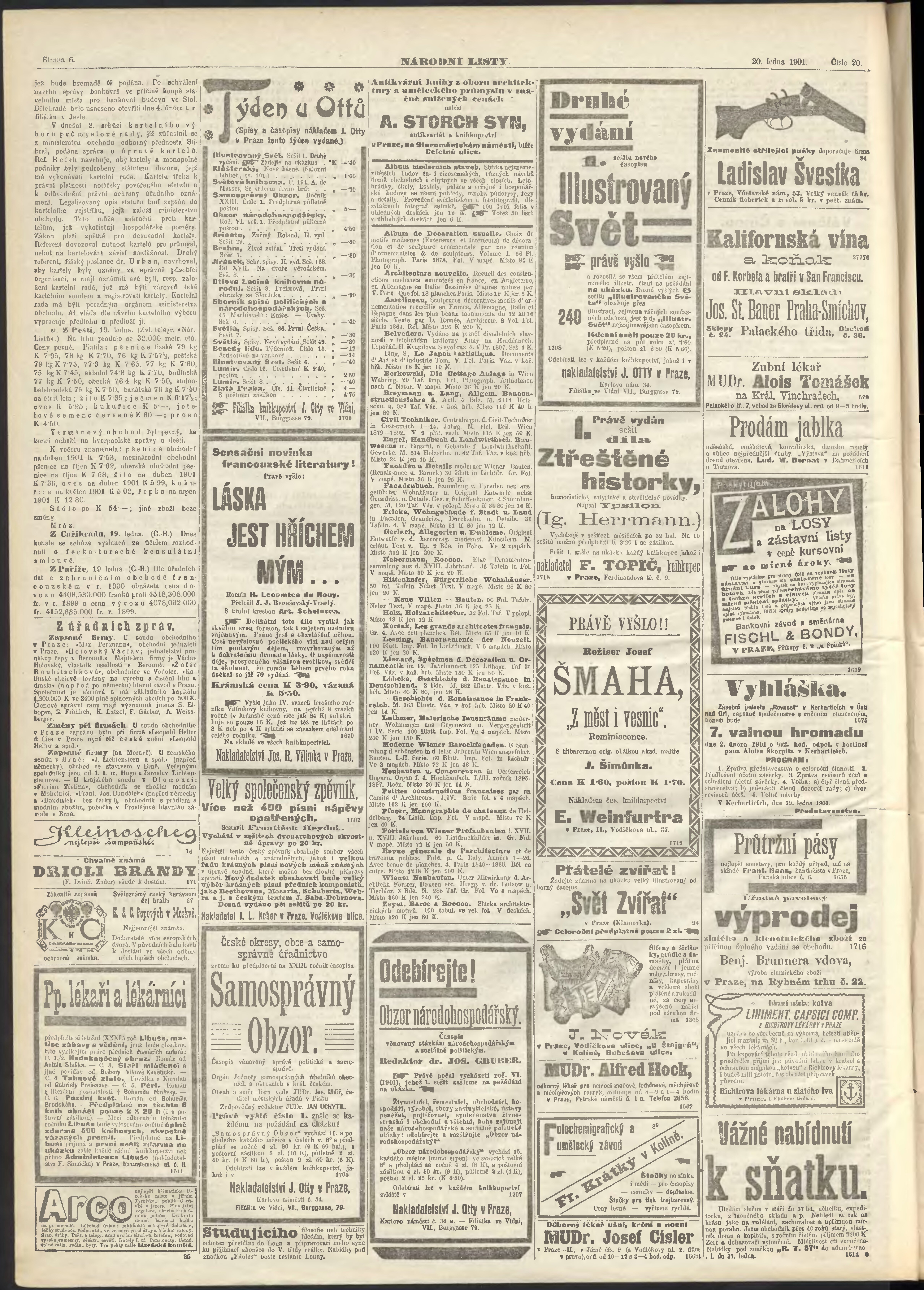 * Datum vydání výtisku: 20.1.1901 Číslo výtisku: 20 Poznámky k výtisku: ranní vydání;