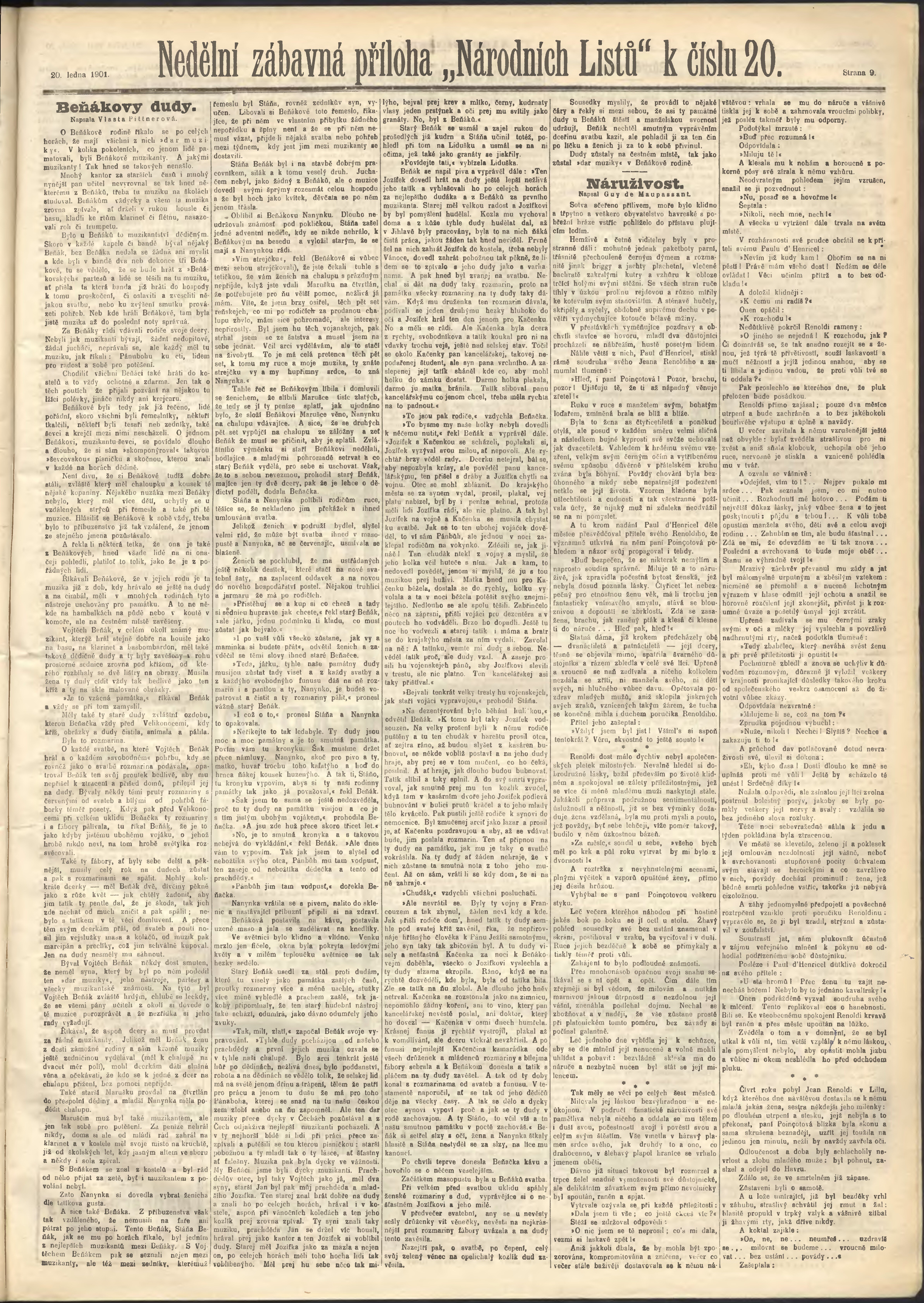 * Datum vydání výtisku: 20.1.1901 Číslo výtisku: 20 Poznámky k výtisku: ranní vydání;