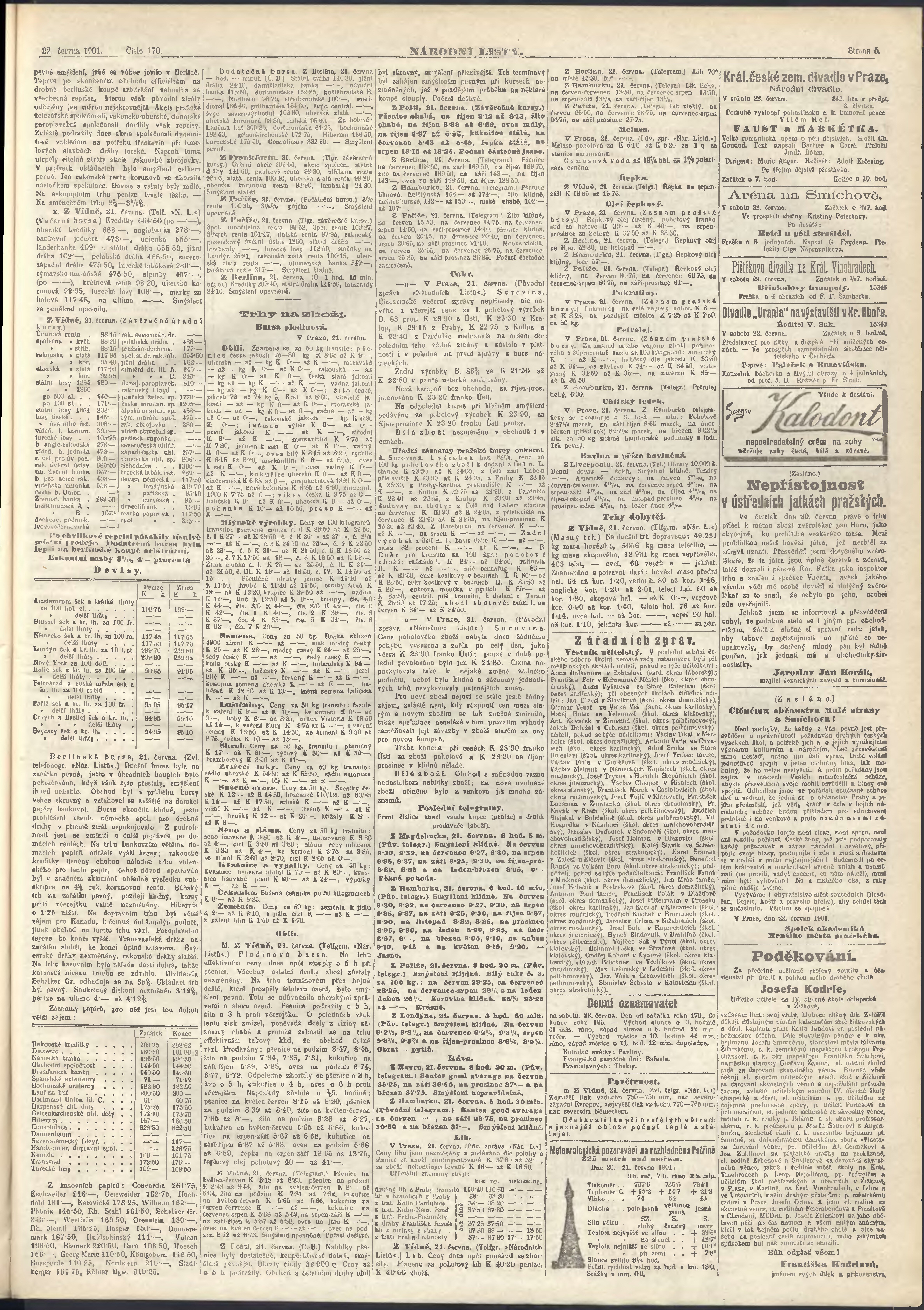 * Datum vydání výtisku: 22.6.1901 Číslo výtisku: 170 Poznámky k výtisku: ranní vydání;