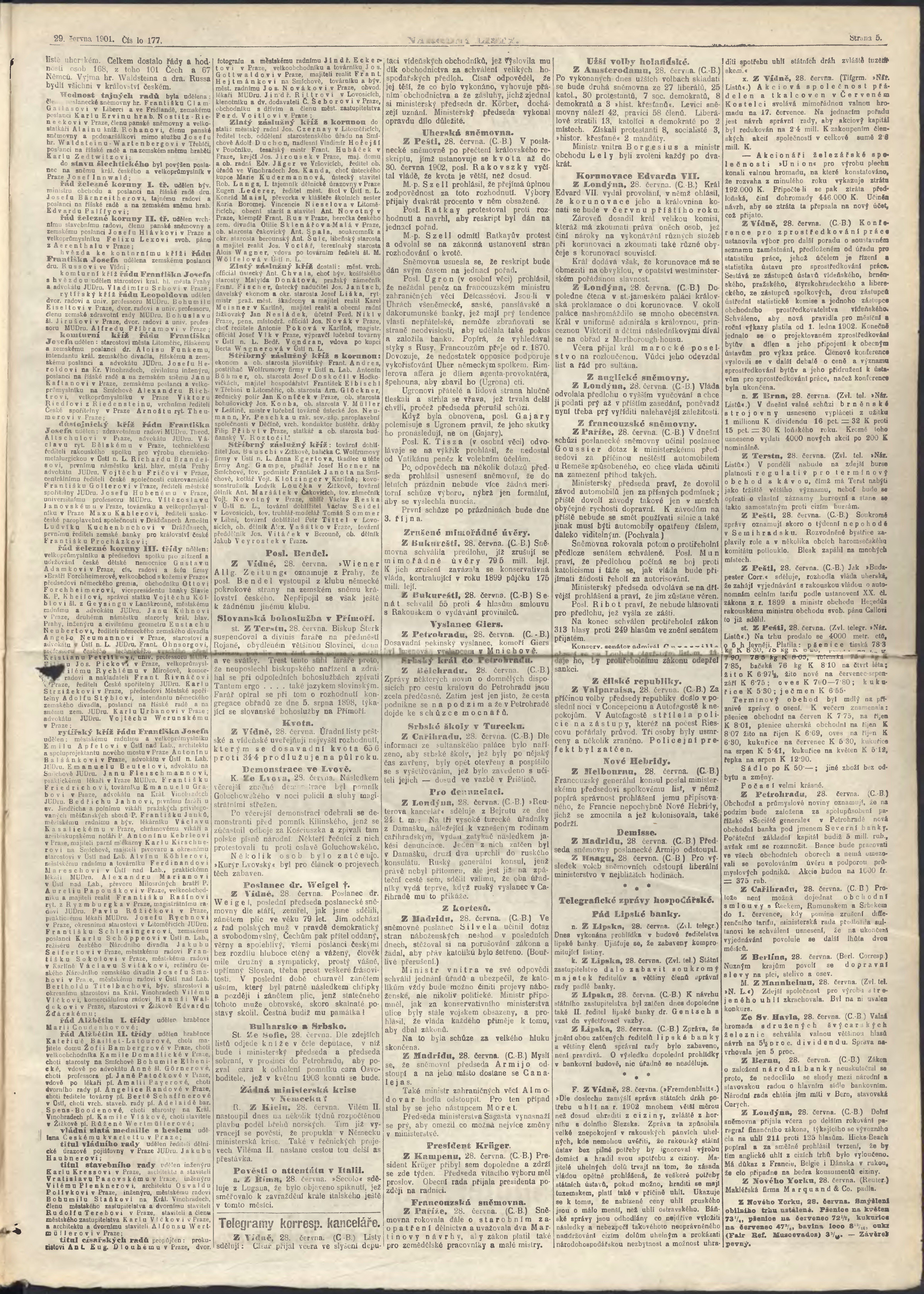 * Datum vydání výtisku: 29.6.1901 Číslo výtisku: 177 Poznámky k výtisku: ranní vydání;