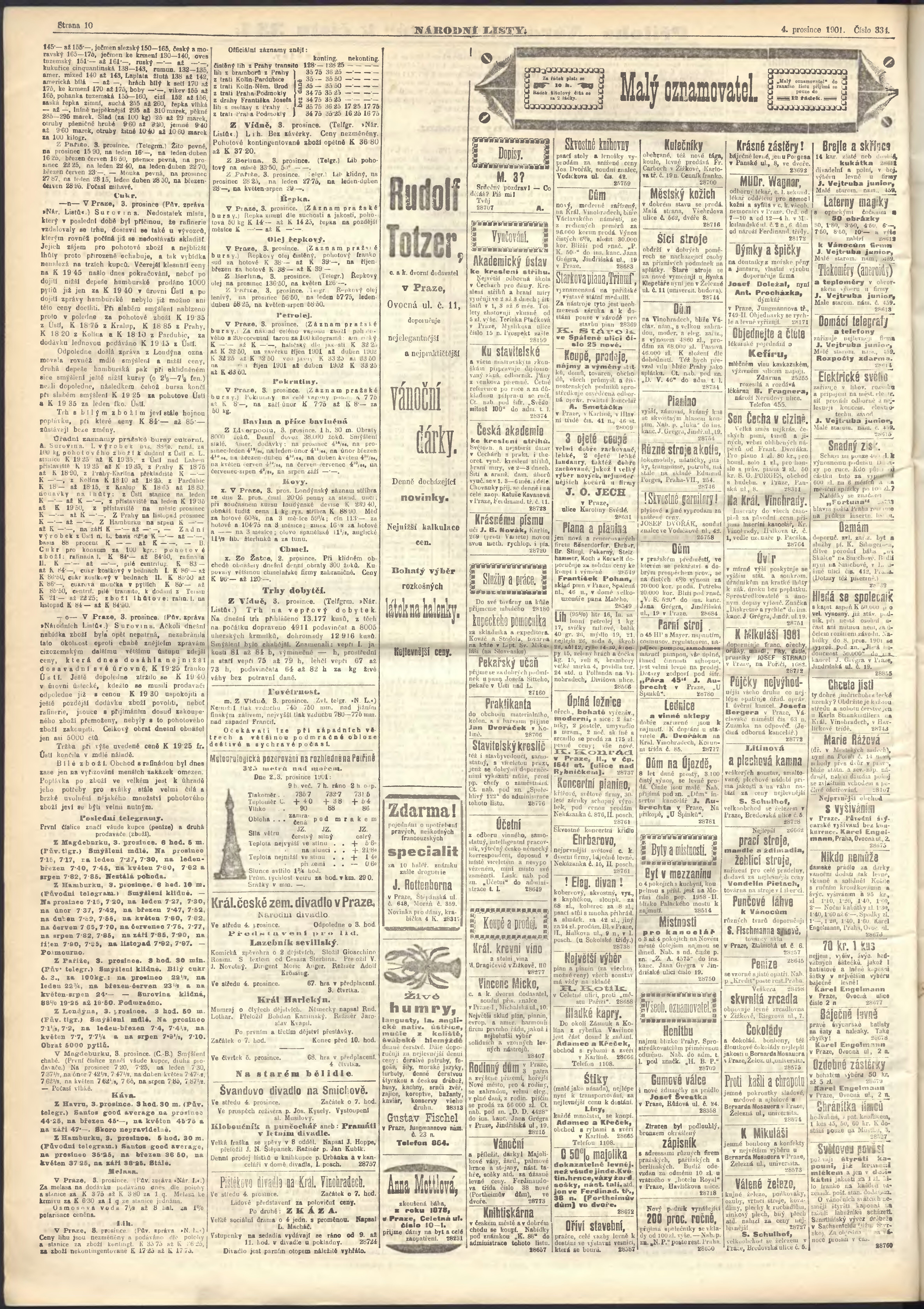 * Datum vydání výtisku: 4.12.1901 Číslo výtisku: 334 Poznámky k výtisku: ranní vydání;