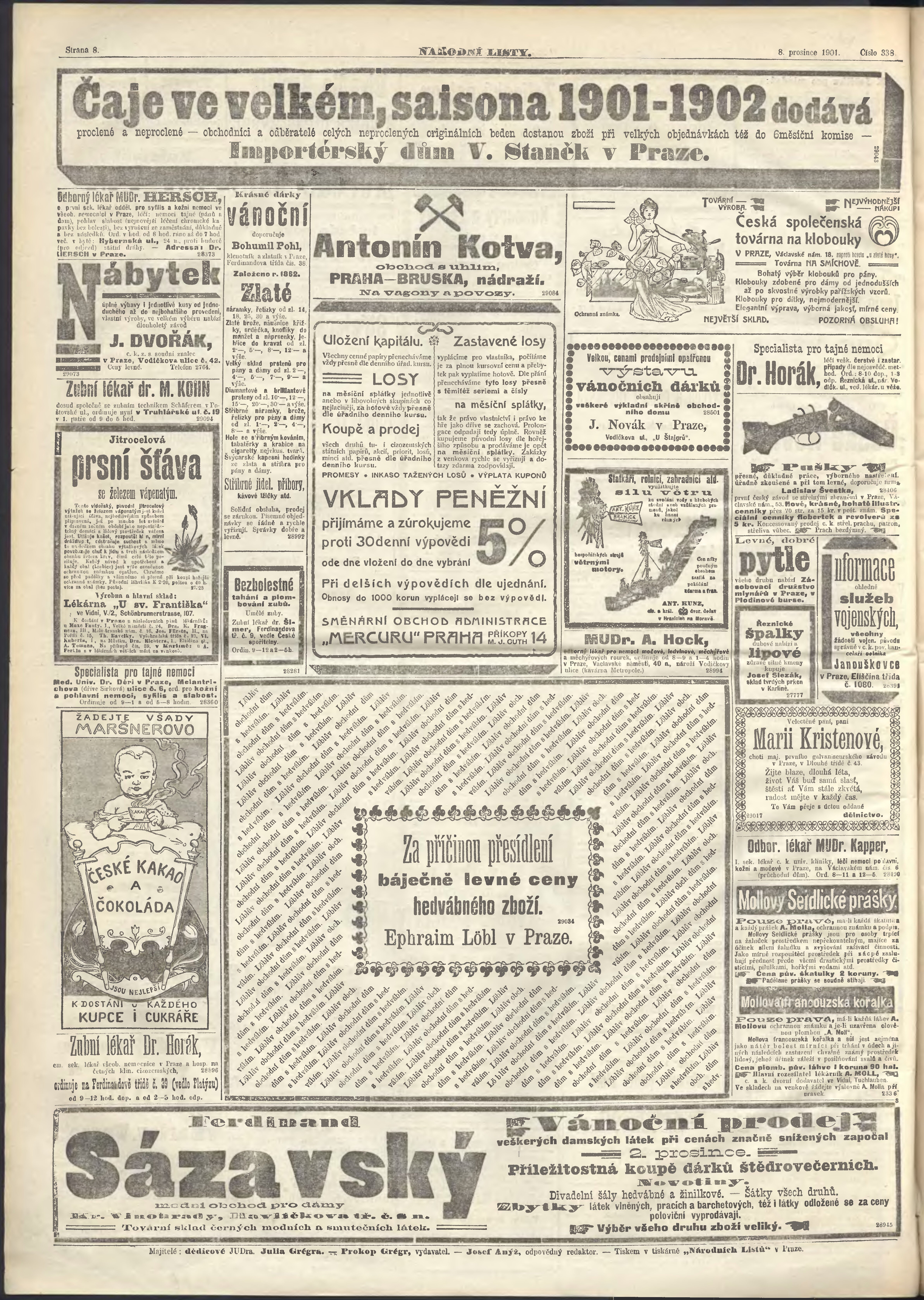 * Datum vydání výtisku: 8.12.1901 Číslo výtisku: 338 Poznámky k výtisku: ranní vydání;