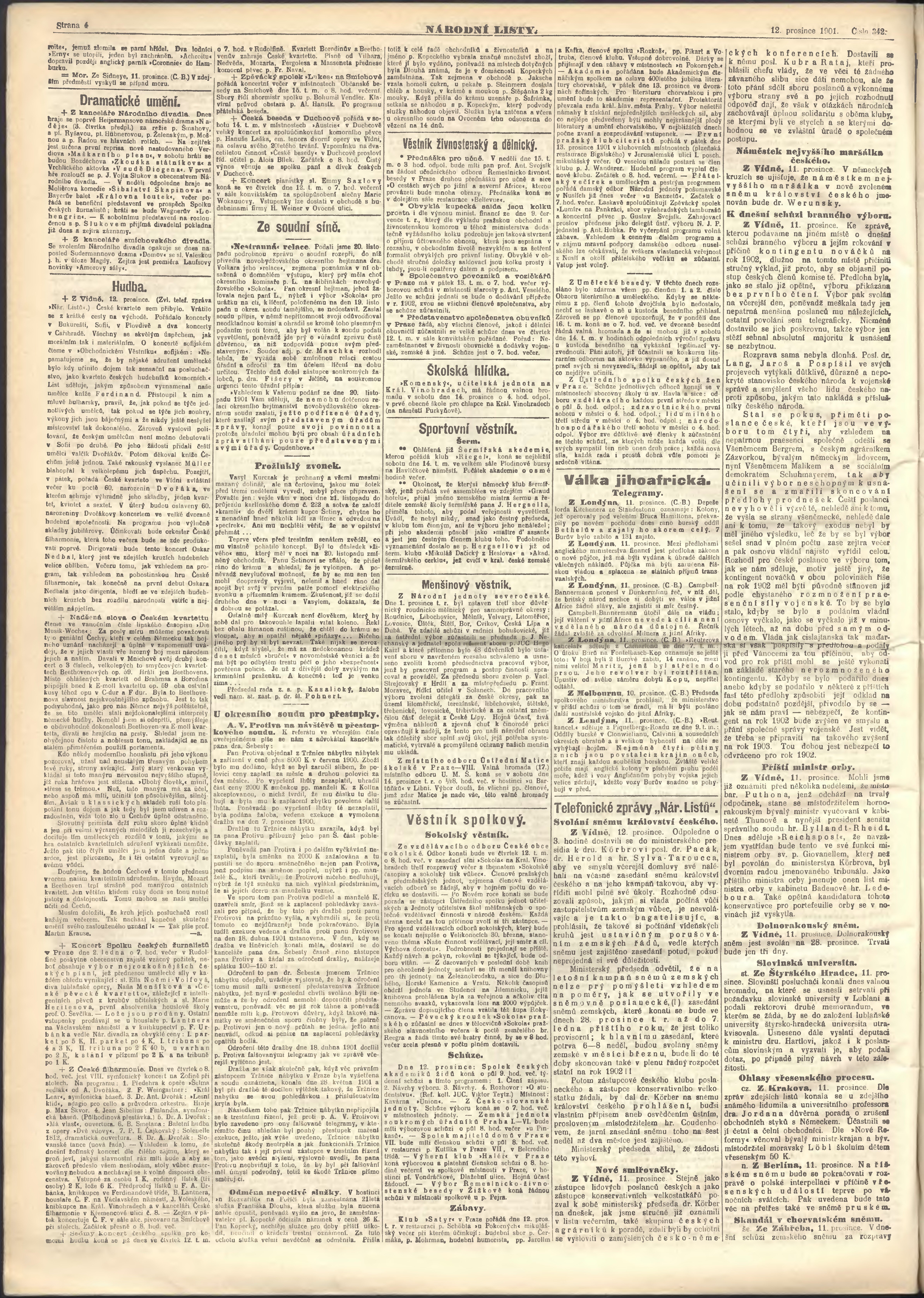 * Datum vydání výtisku: 12.12.1901 Číslo výtisku: 342 Poznámky k výtisku: ranní vydání;