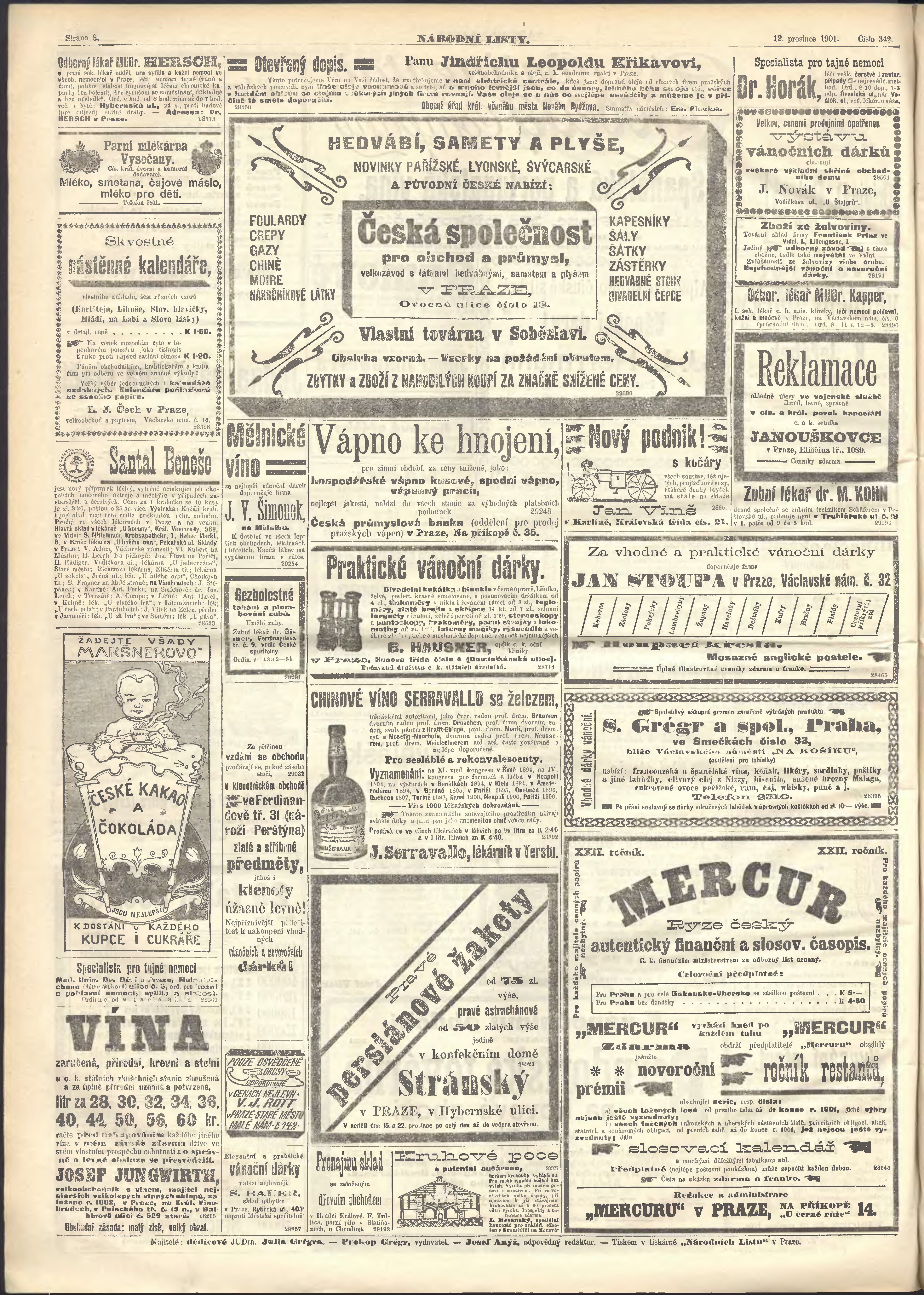 * Datum vydání výtisku: 12.12.1901 Číslo výtisku: 342 Poznámky k výtisku: ranní vydání;