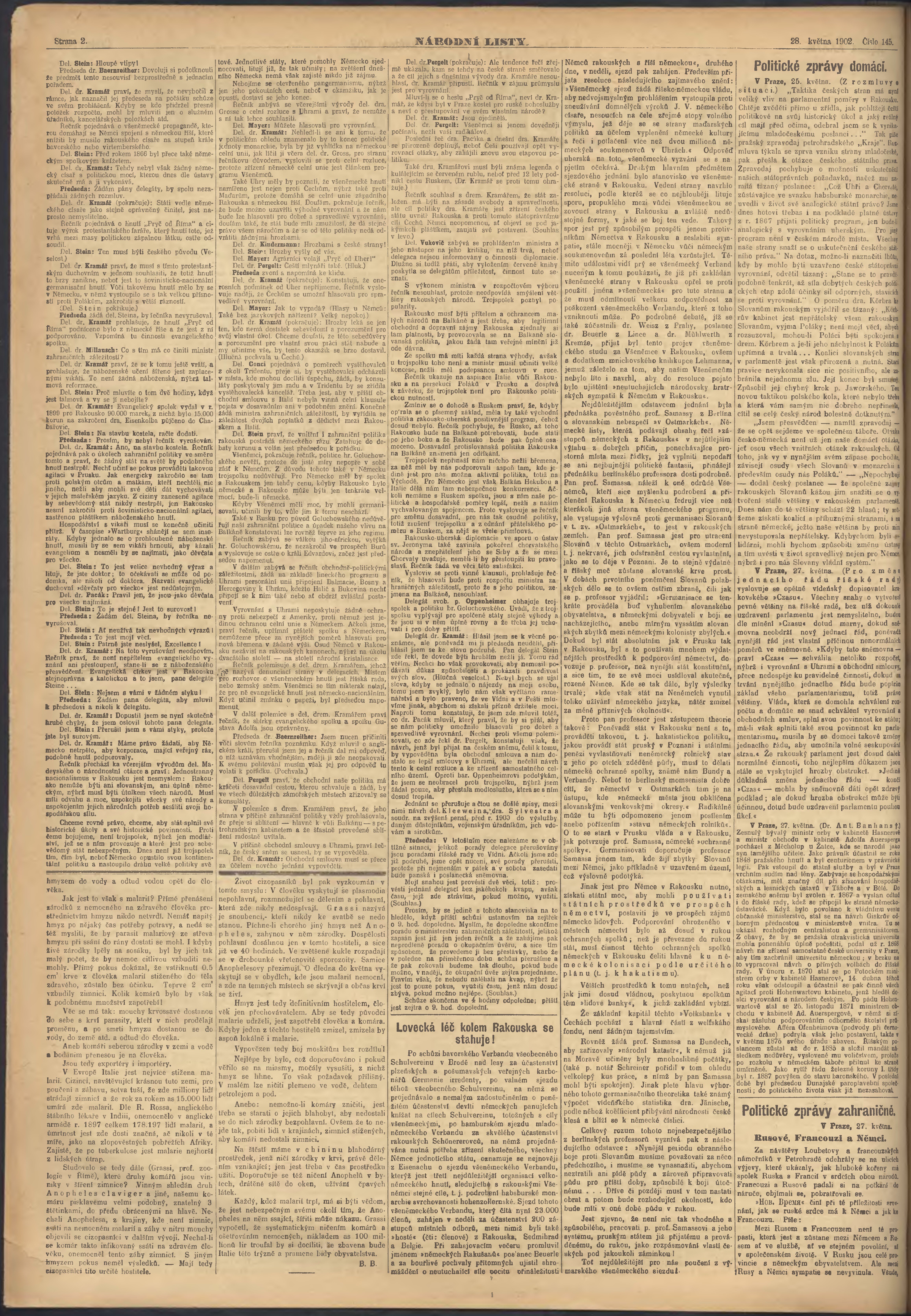 * Datum vydání výtisku: 28.5.1902 Číslo výtisku: 145 Poznámky k výtisku: ranní vydání;