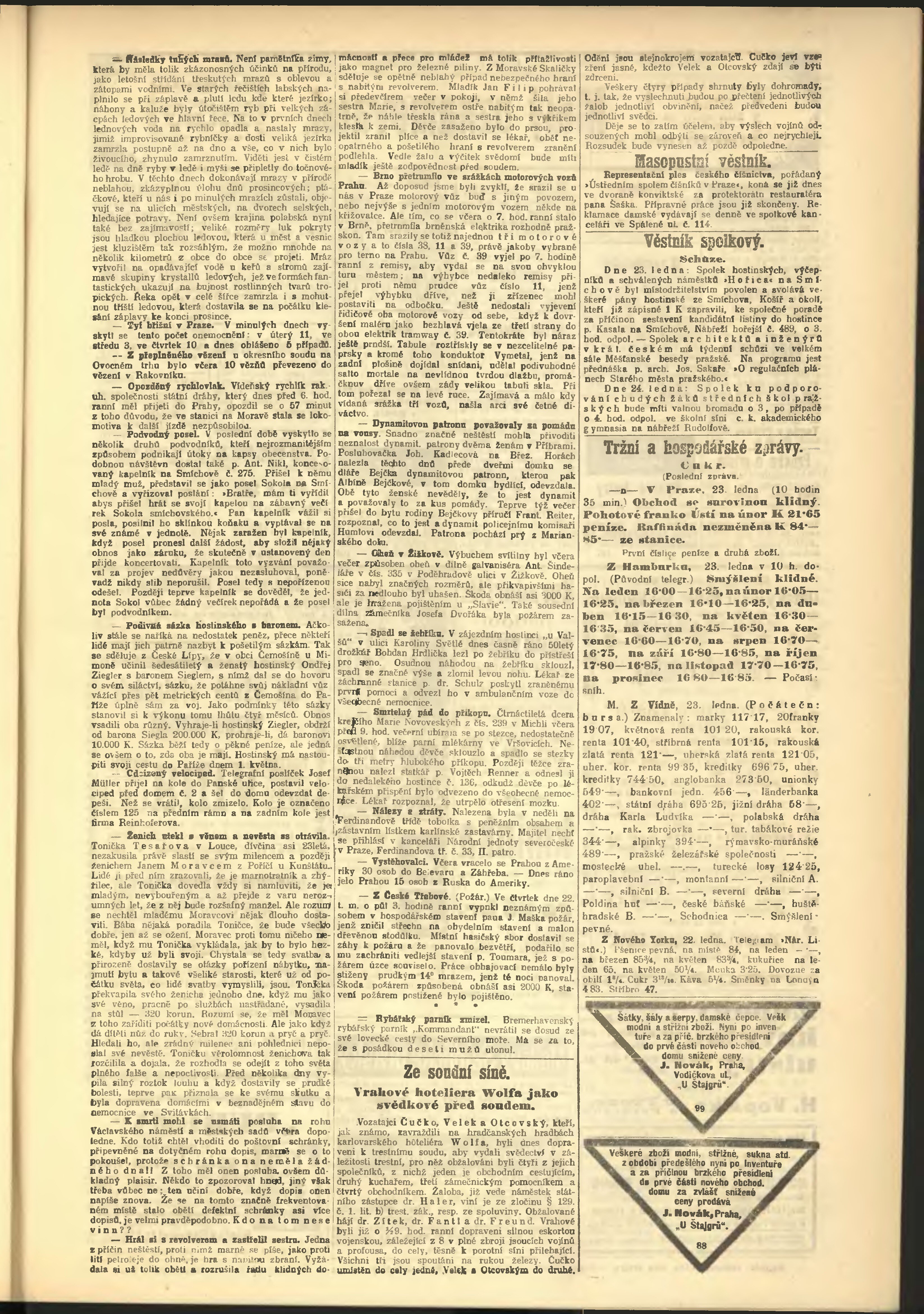 * Datum vydání výtisku: 23.1.1903 Číslo výtisku: 23 Poznámky k výtisku: odpolední vydání;