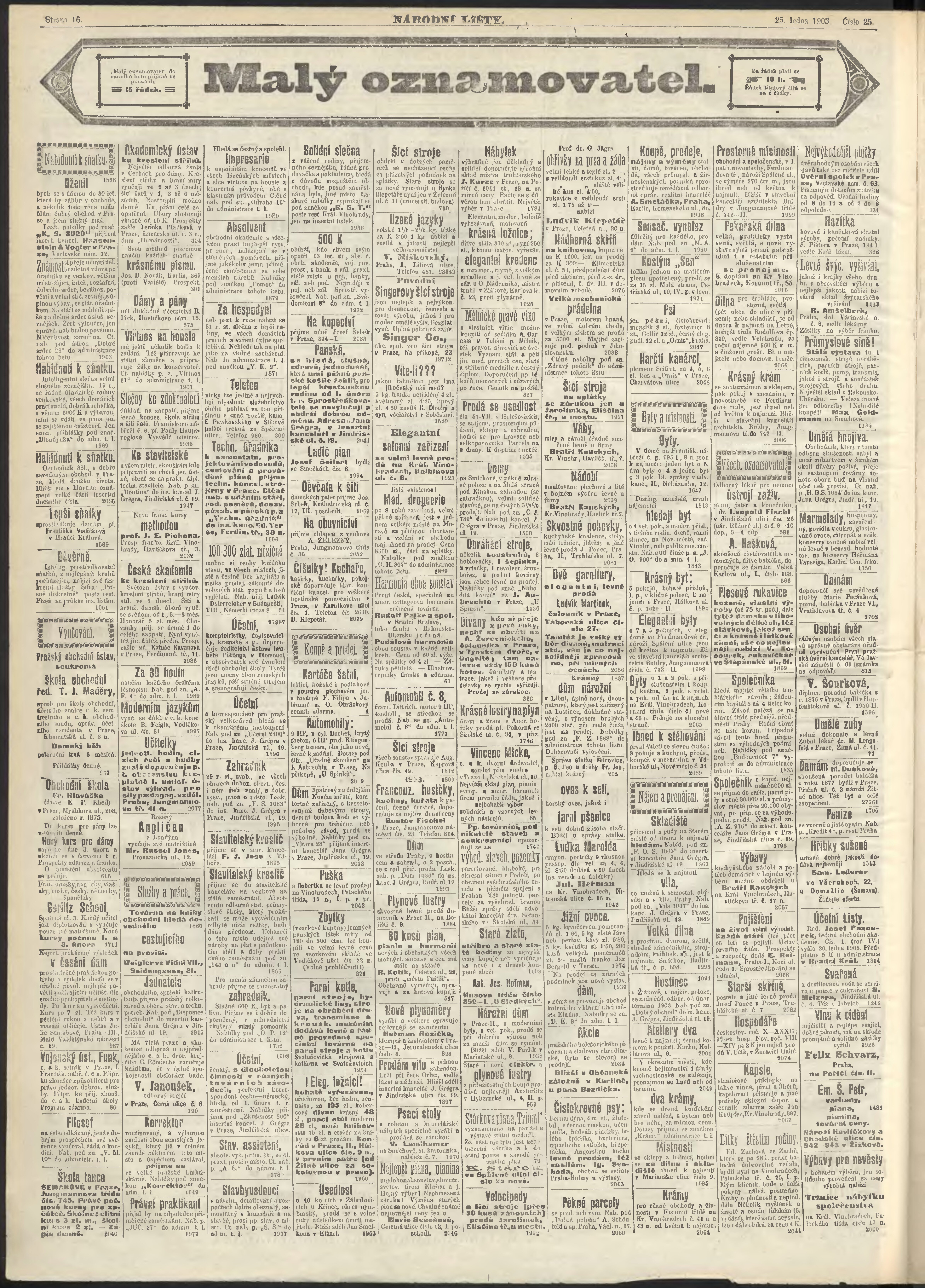 * Datum vydání výtisku: 25.1.1903 Číslo výtisku: 25 Poznámky k výtisku: ranní vydání;