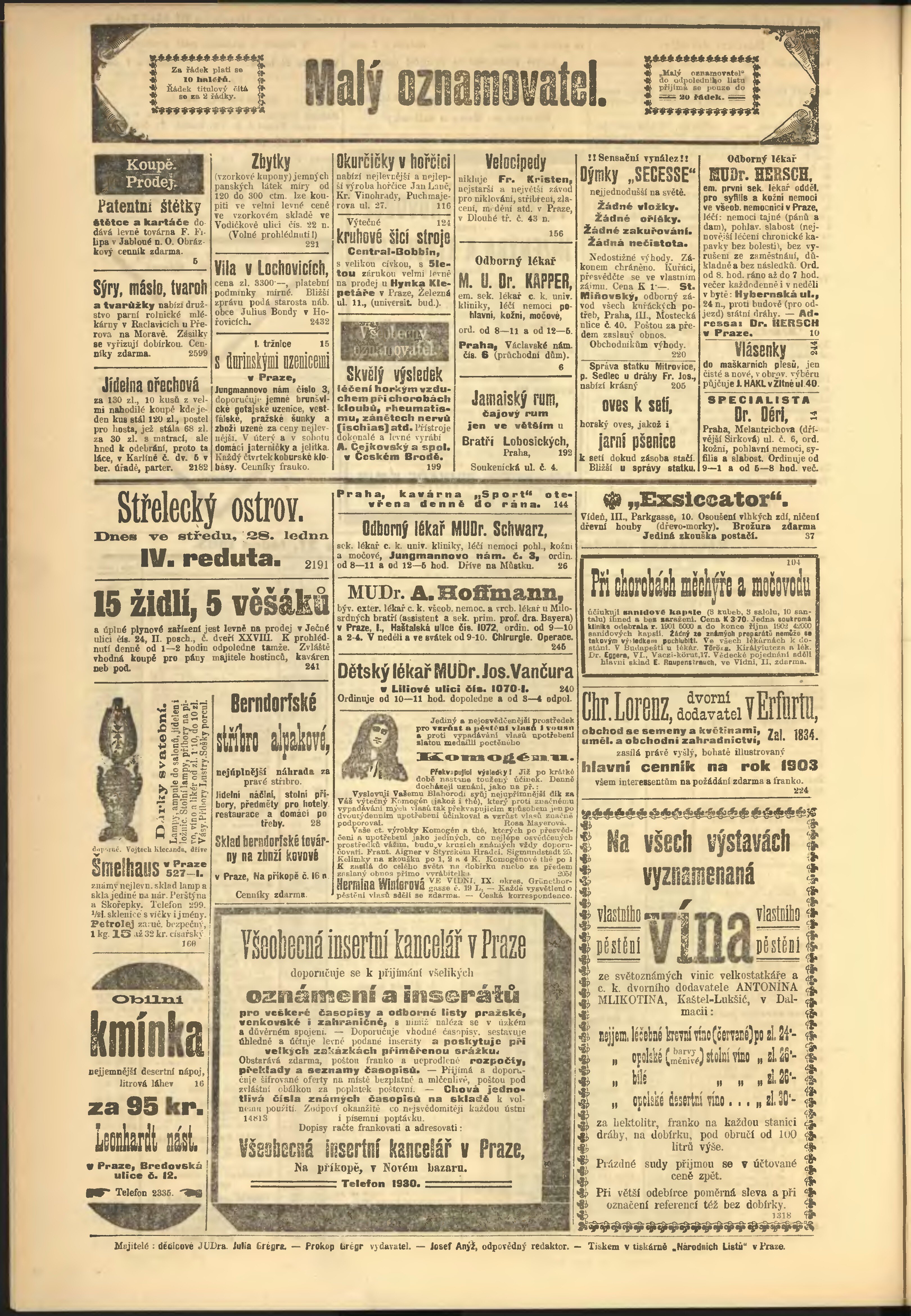 * Datum vydání výtisku: 28.1.1903 Číslo výtisku: 28 Poznámky k výtisku: odpolední vydání;